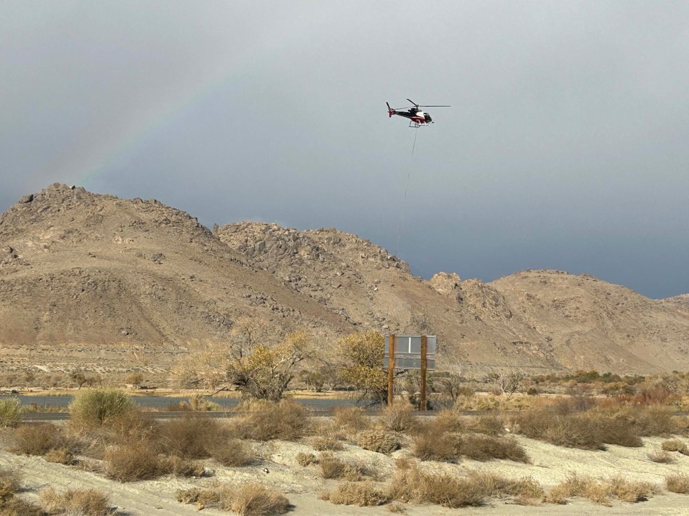 At this point we were stuck but thankfully we had solar power and water so we settled in to wait it out. No one ever came to tell us the roads were clear but around 8am we decided to drive down and saw the fires were better and the highway was open. We even got to see a helicopter with a water bucket making flights to the sight and saw a rainbow which led me to believe it maybe had rained in the mountains which might have helped some.