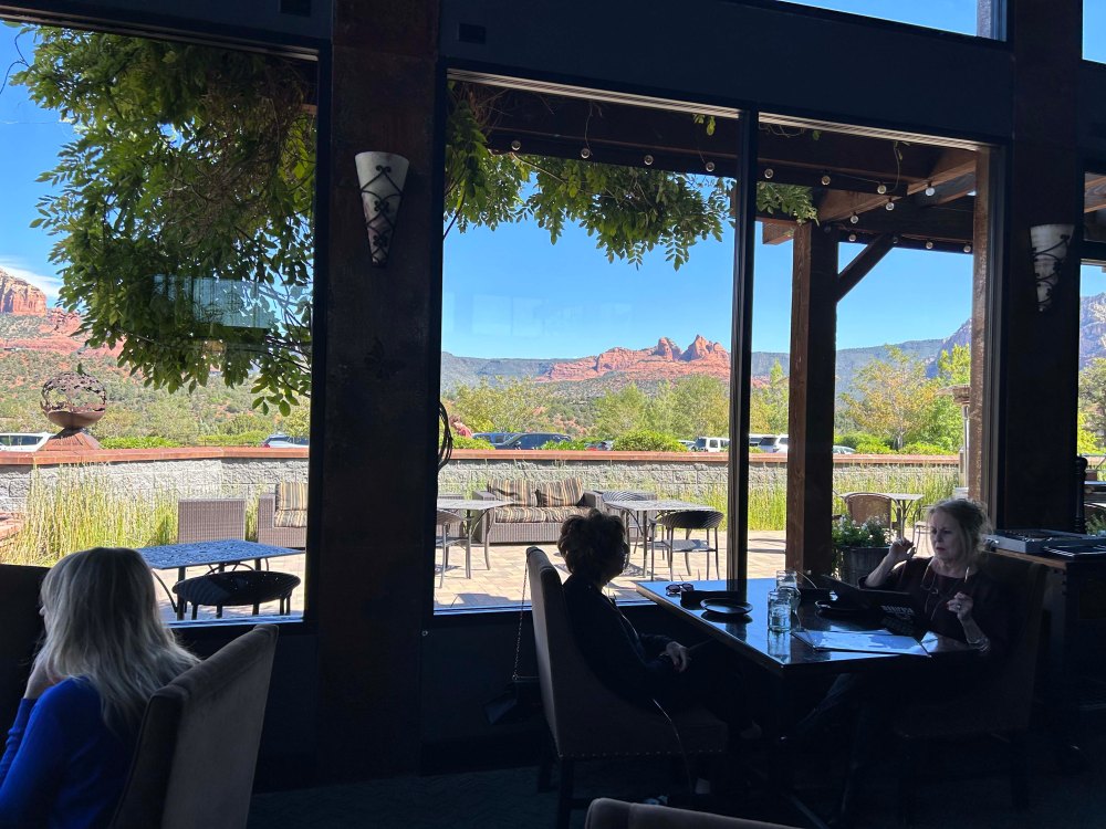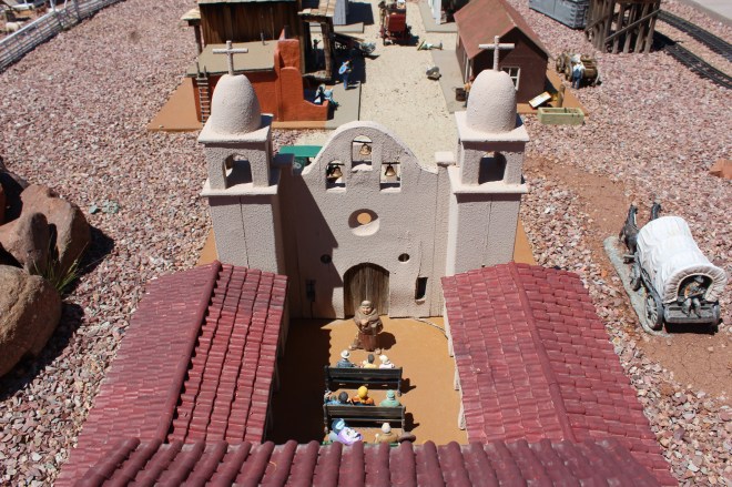 I reached out to our friend Deb to tell her we were in Winslow and she recommended one of their favorite breakfast spots. The Turquoise Room is in the La Posada Hotel, which is the last open hotel of the Harvey Railroad chain. It is an amazingly nice hotel and the restaurant is very pricey, but we thought the treat would be worth it since it came so highly recommended. The coffee for example is $3.50 a cup, but it was an excellent cup of coffee. Much better than what you would pay similar prices for at Starbucks. The breakfast was reasonably priced at $10.50, but was a mixed bag. The sausage and bacon were mediocre, but the cooked potatoes were fantastic. They had chilies in them and even though I don’t usually like spicy food, the flavors were so delicate they were absolutely delicious. My main complaint was we only received one slice of sour dough toast and when it came out it was cold. I’m OK with occasionally splurging on a meal, but I expect it to be practically perfect in those cases. The ambiance couldn’t be beat though, and our waiter was excellent, so if you have the means and you’re in the area, it’s definitely worth trying. They had a really nice dinner menu, but the entrees start at $32 and that was just out of our price range. Breakfast was $32 plus tip. We were curious about how this place could keep going since Winslow seems a bit depressed, but we were told by a local that the main railroad hub is in town and many railroad executives come through here.
