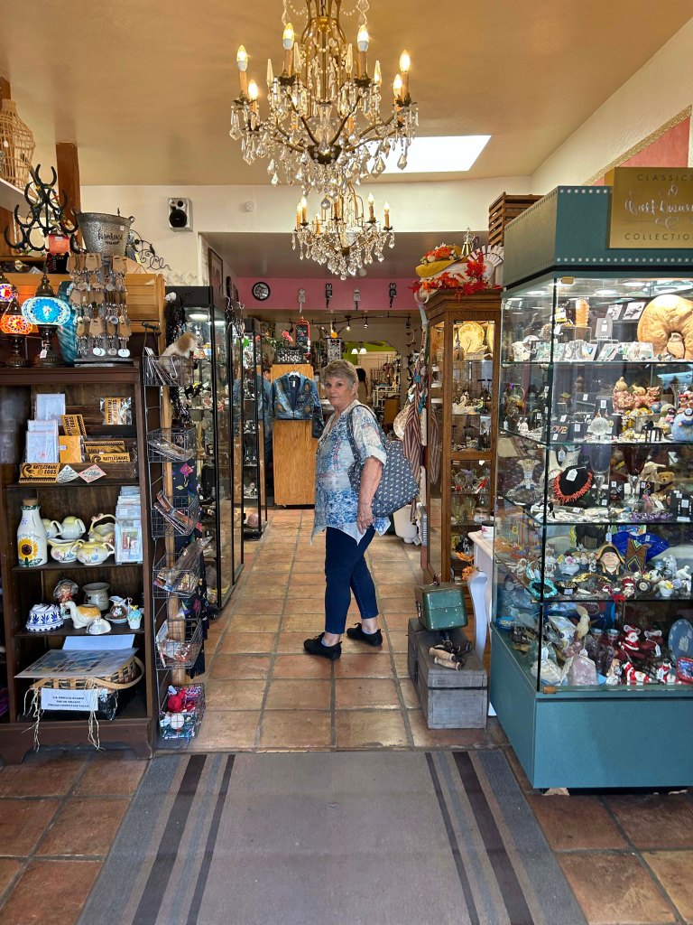The hotel was full of antiques. I loved this clock. The lobby and restaurant also had $2,200 Navajo blankets hanging on the walls for sale