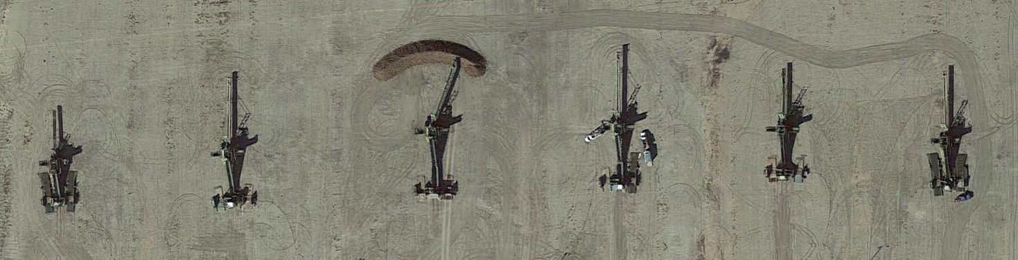 Here’s a picture of the pilers all lined up, rotated 90 degrees counter clockwise from the original. Again, that thing on the right of piler 4 is a tractor trailer.
