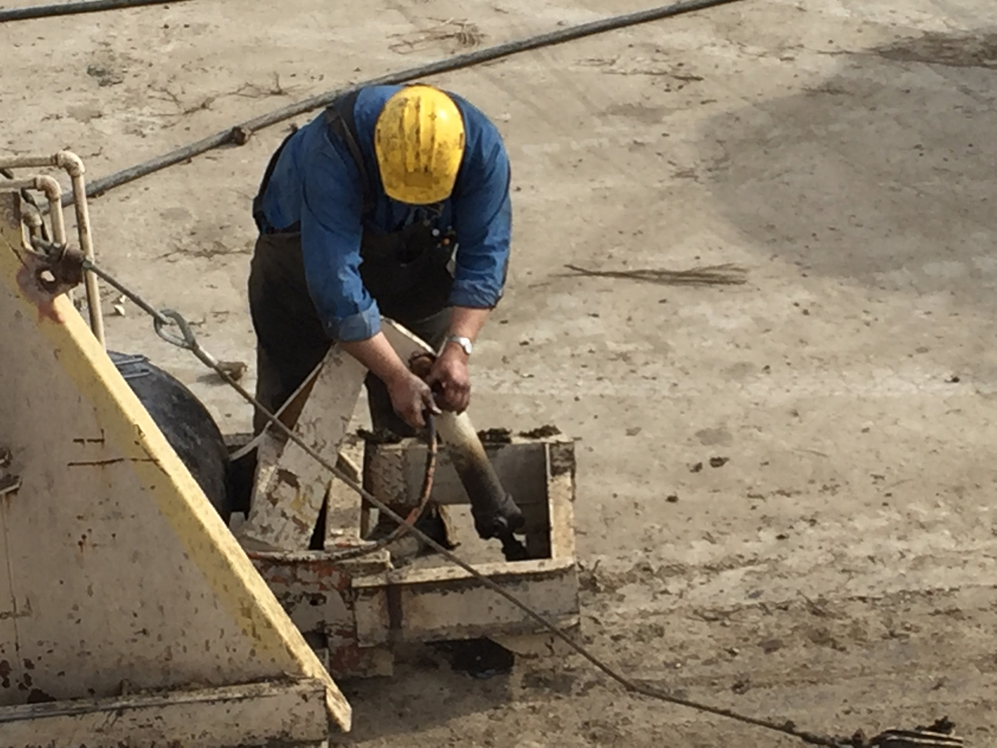 And here’s a close up of the pile being started.This is what it looks like before the piler is moved back three feet for the first time.