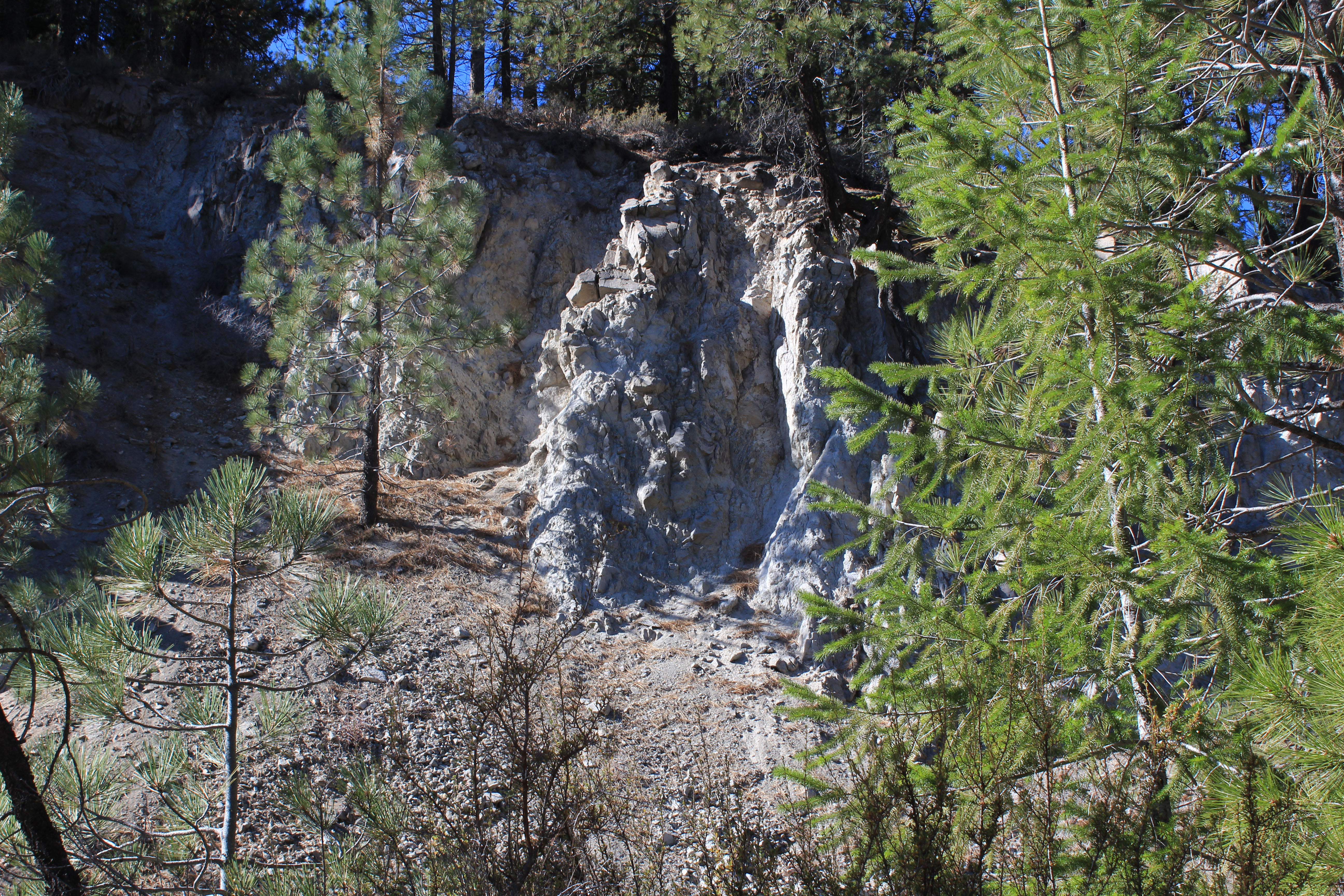 Lee had a beautiful place picked out for our lunch, but after two hours of riding and only seeing 4 other people, there were people at the spot. He was pretty bummed but we kept on going and I thought we found a really nice place close by. (After Goumaz, there’s another nice long smooth drop, through totally different rock and vegetation, so you really get to see four distinct environments on the ride. It’s very interesting. Here and there along the trail, Boy Scout groups have cleared out a little area along the trail and built really nice benches. I had picked out a great spot near the bottom of the second drop section, where the trees were gone, and there is this huge flat valley floor with a massive ranch and the ranch house in the distance. It was a perfect spot for lunch, and we arrived there at just the right time, but there were people there. I should have made a reservation. – Lee)