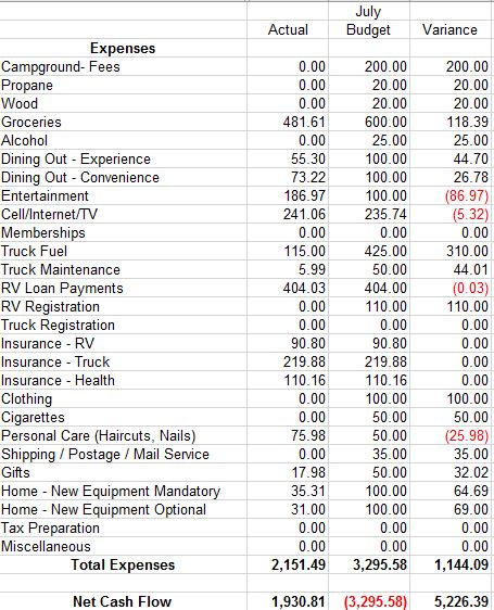 Home Repair – Obviously we had a significant overage for the month in this category, spending $690 over budget. $260 of that was the new toilet, and the rest was the raw materials for several repairs Lee has made. As I have talked about in earlier blog posts, Lee is doing a year’s worth of maintenance while he has the opportunity, so we are still significantly under the $2400 annual budget amount. And we did talk about these experiences as they occurred, so we knew this category would be steep this month.