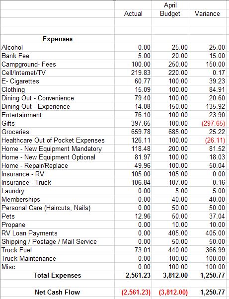 Truck Maintenance – This category is a bit in flux. We think we have enough maintenance visits remaining on our prepaid Ford plan to last the rest of the year, but that depends on how many miles we end up driving this year. For the time being I will be putting in $50 a month.
