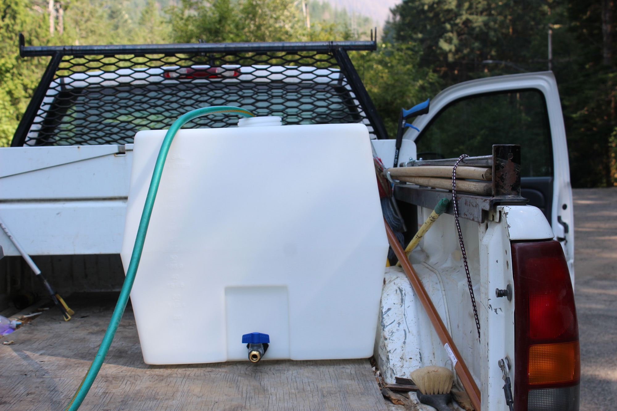 It wasn’t all bad though. Our water tank came in and Lee was very happy getting it setup with a hose and spigot. This is going to make our lives so much easier and we were both thrilled it finally came in. It does move around a bit though (even filled with water) and Lee is trying to figure out how to strap it down. The only downside is less room in the truck bed for trash, but we will be changing our route to make more frequent trips to the dumpster to accommodate. Since most of what we do requires water, it is well worth the inconvenience.