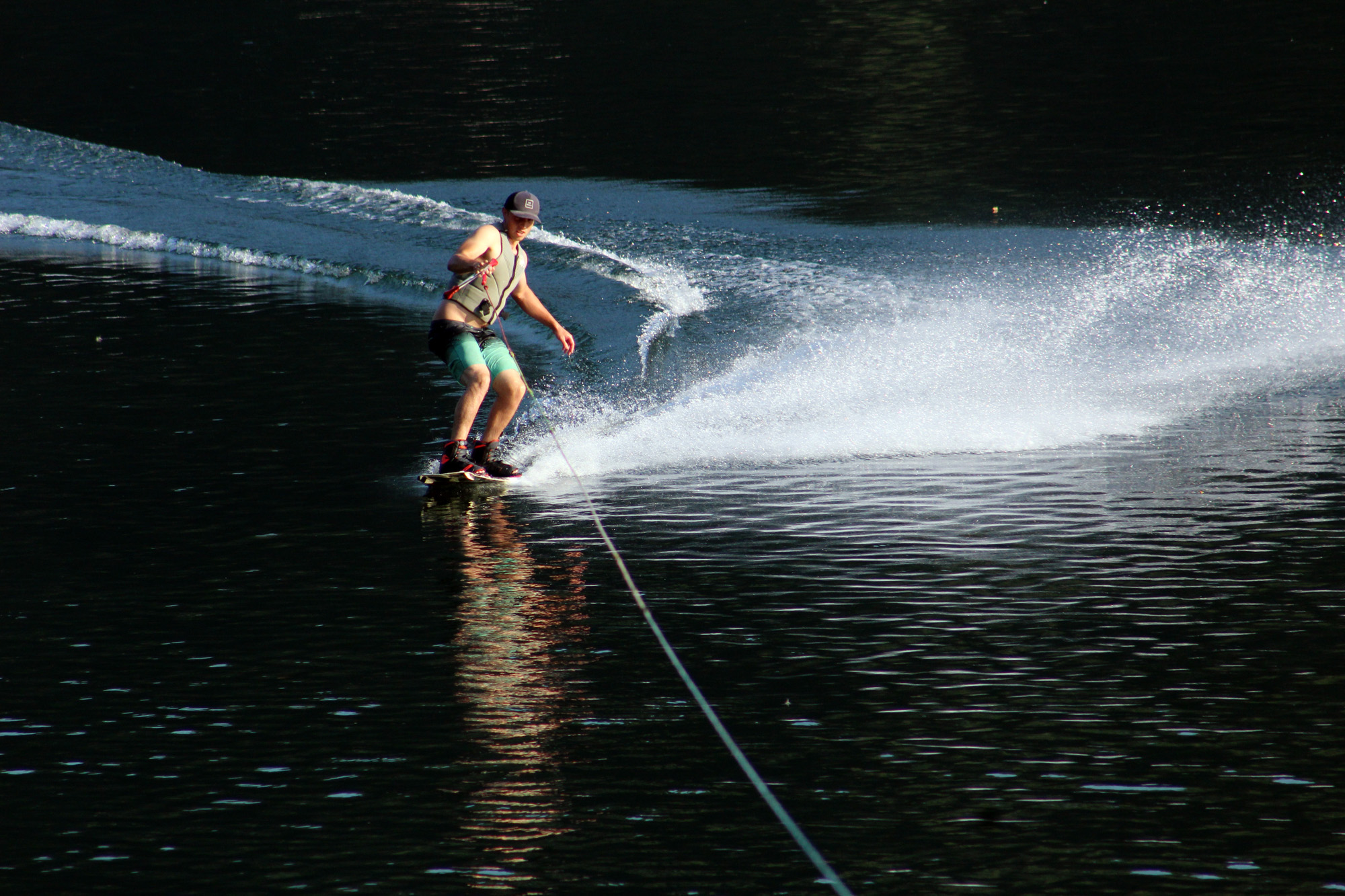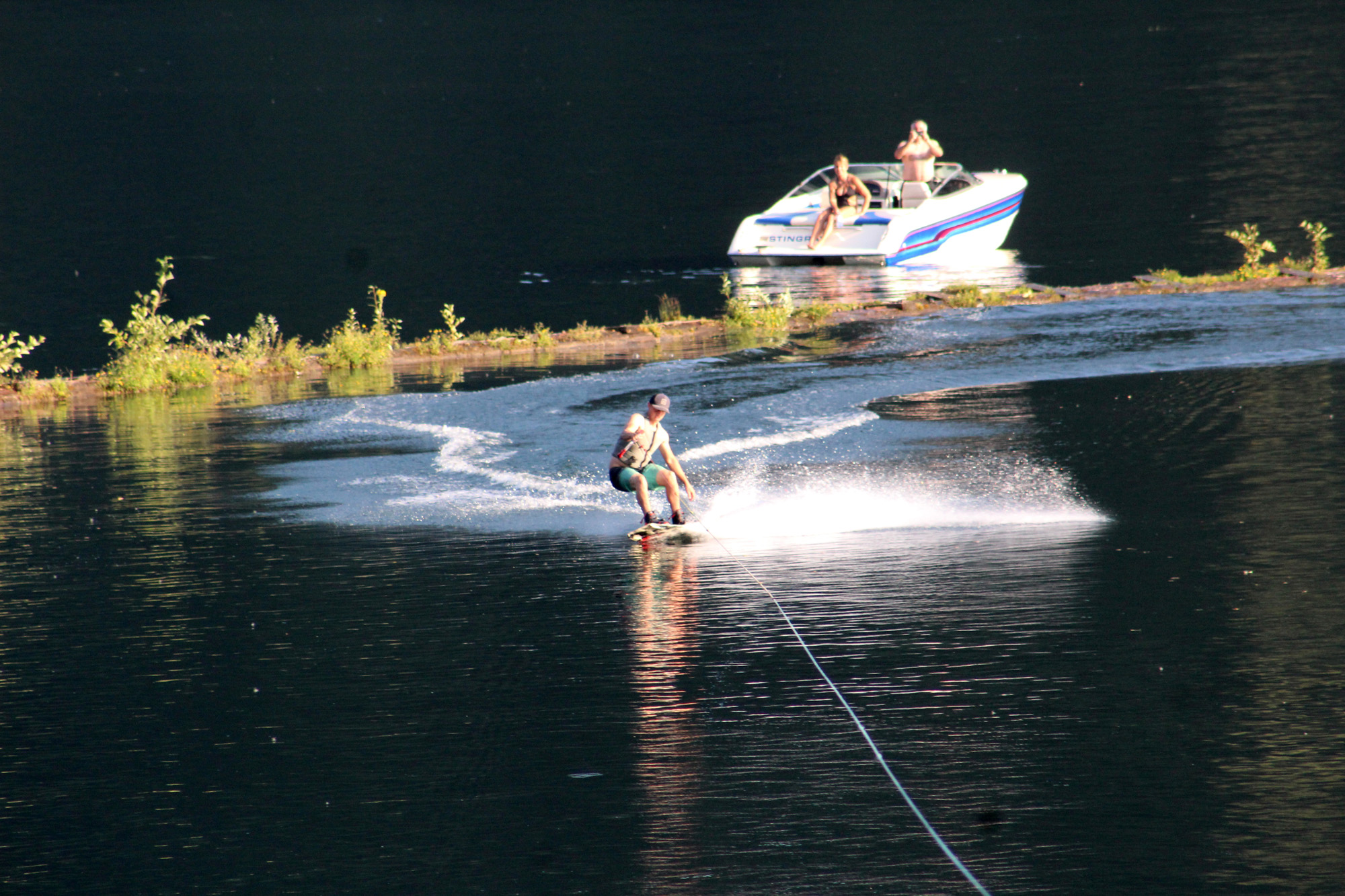 We also came upon the coolest thing up at the “kid hangout” place in lower launch. A clean cut young man was there with his group of friends and they had a device that was on wheels. I walked up to ask what it was and immediately he looked worried. Turns out he built a motor that pulls a line across the water. It was his invention and totally amazing. Why he invented it was of interest to me as well. He doesn’t have a boat but wanted to water ski, so built a motor that allowed his friends to do that. Gotta love American ingenuity and I told him he should definitely go to engineering school. Lee talked to him about how it worked for some time and then they showed us with one of his friends skiing. Really, really cool. And I should say as much as we hear about kids in trouble and drug use in this country, there are also kids like this one who are out there inventing things. Fantastic!