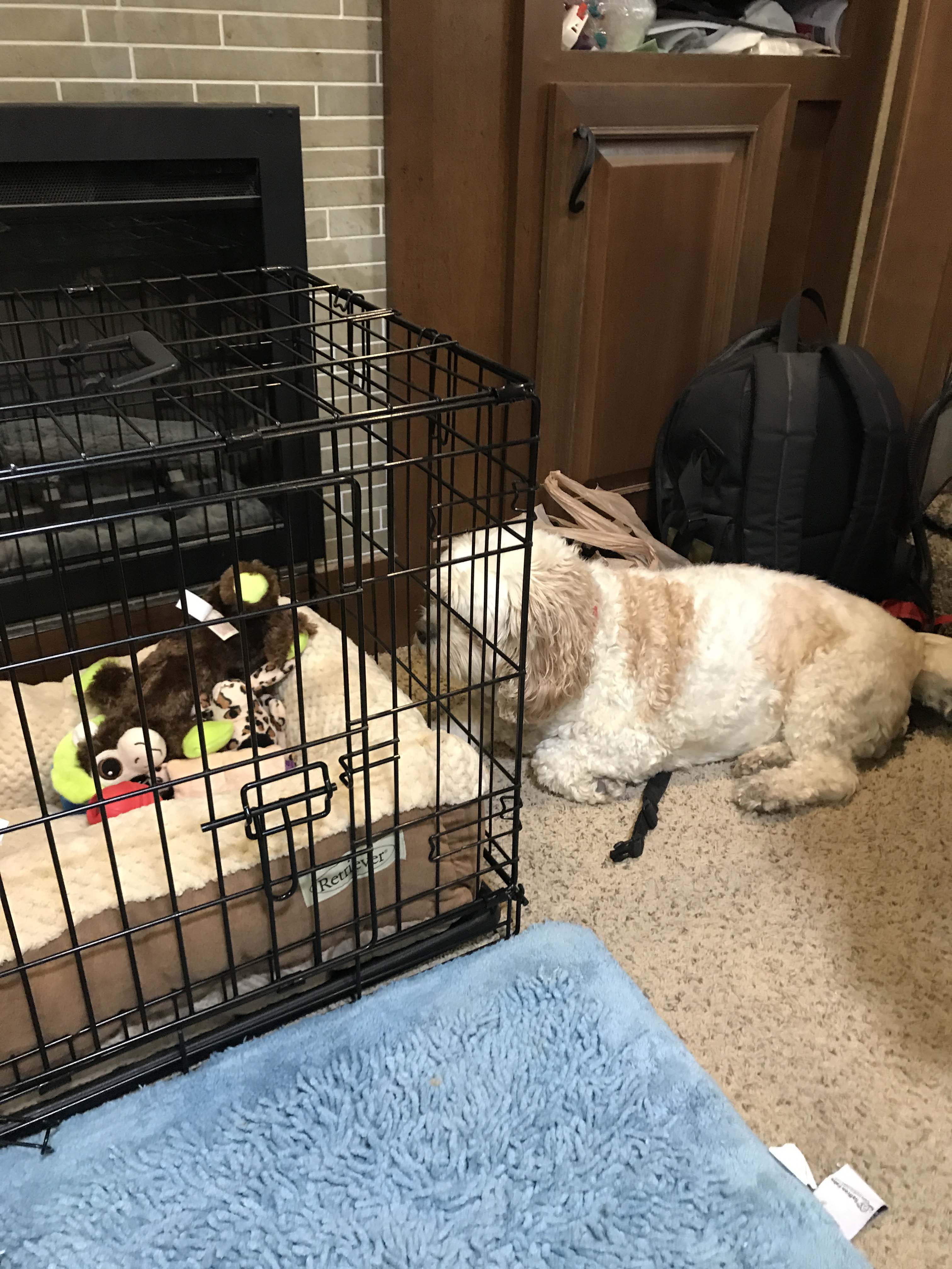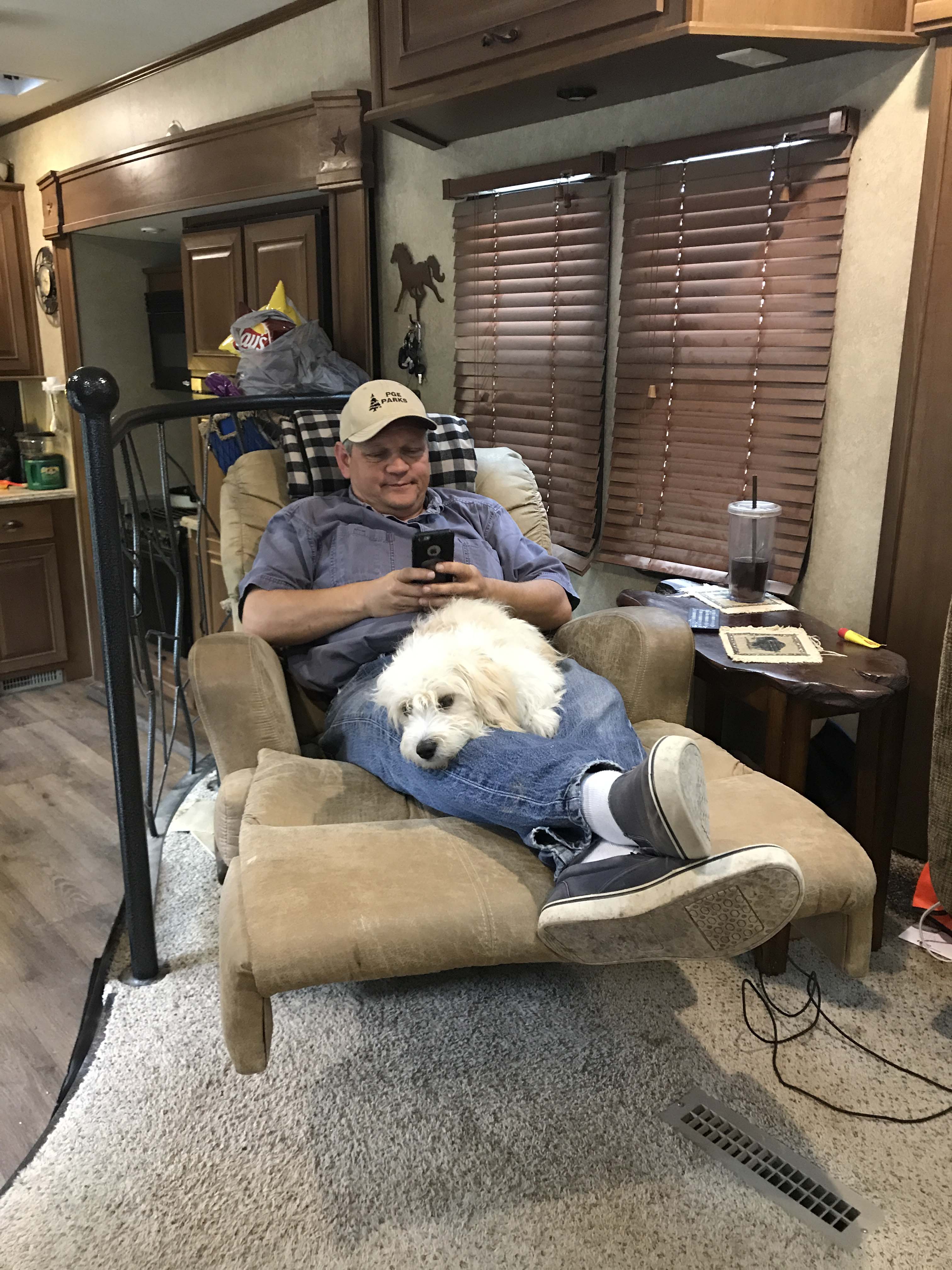 This particular breeder was located in Mason, Texas which was two-and a half hours north/northwest of San Antonio. It was a retired couple and because they lived out in the country the directions were pretty awesome, including turn left at the blinking light past the Dairy Queen, and my personal favorite “go down a dirt road until you see my gate with a star on it. If my bulls are standing in font of the gate give me a call and I will come move them out of your way.” My kind of place! Lee agreed to go with me and even though it was a long drive, I promised myself that if I wasn’t feeling it I would walk away. Our friends Jim and Barb had bought a dog on the road a couple of years ago and I vividly remember when they wrote about it in their blog, her walking away from a couple of dogs based on gut feel. Here’s the link to their post Say Hello To our little Friend experience, as a comparison, because I think they did an excellent job of working through the challenges of adopting a dog on the road. They were the first people I knew who did this (although later my friend Jo adopted a cavalier puppy while in her RV) and hearing about both of their experiences really helped me have an idea of what I was getting into. Not every dog can handle the lifestyle, that’s where I started this post, but most dogs are adaptable over time with lots and lots of attention. I needed to keep that in mind when we were looking today and basically if it didn’t feel like a good fit, trust my gut.