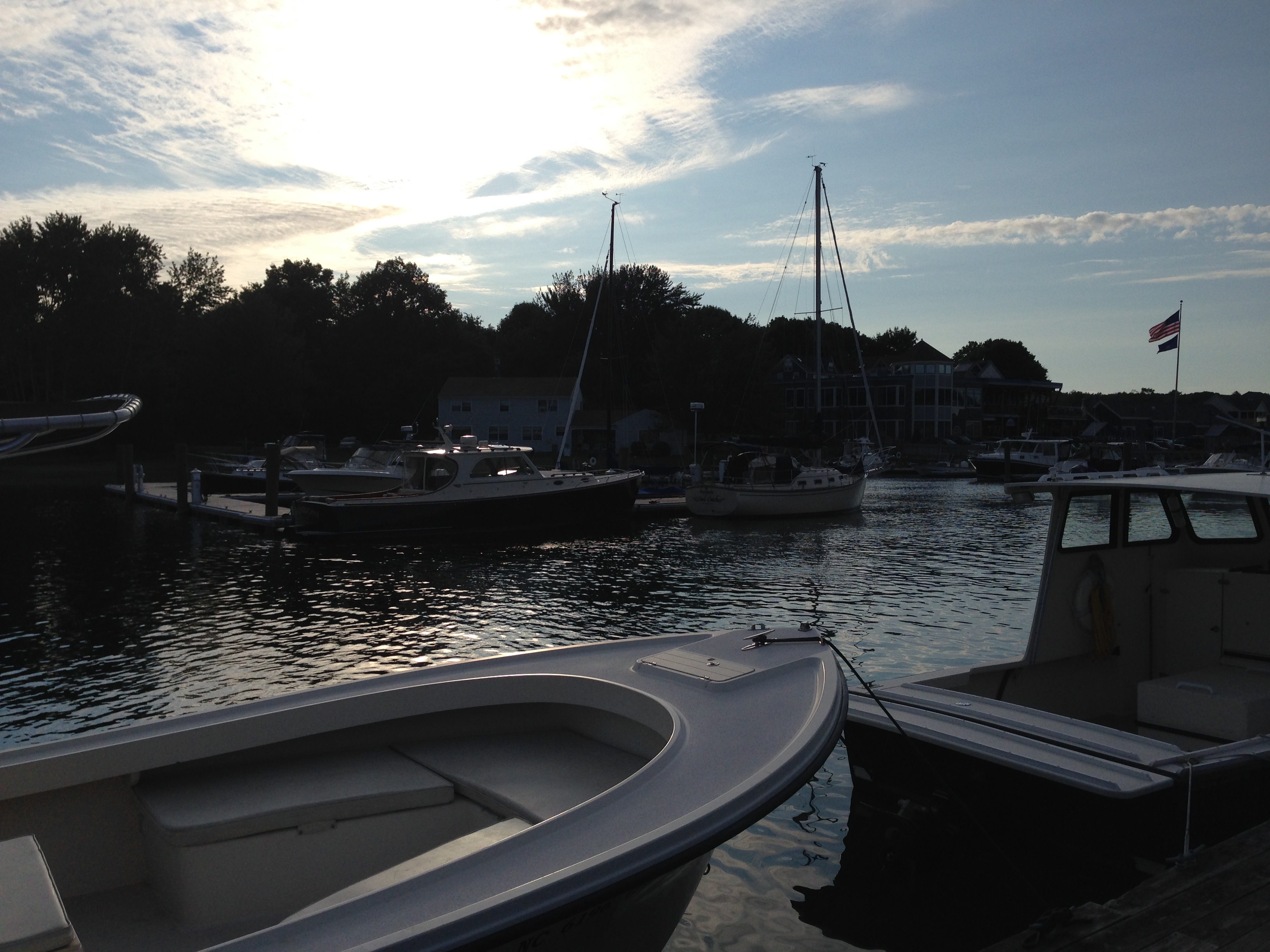 After chatting we decided to go eat dinner down by the water. We knew it would be pricey (high season by the water in Maine is NOT cheap) but we decided to give ourselves a little treat. The restaurant was cool, we at on the deck with lots of views of boats and the food was really good. Three of us had the stuffed halibut and Jo has the swordfish which was all very fresh. Now let me warn you the kitchen was slow and the service was mediocre, but honestly I have come to expect that from New England restaurants. But the food was great and the company as better so definitely glad we did it.