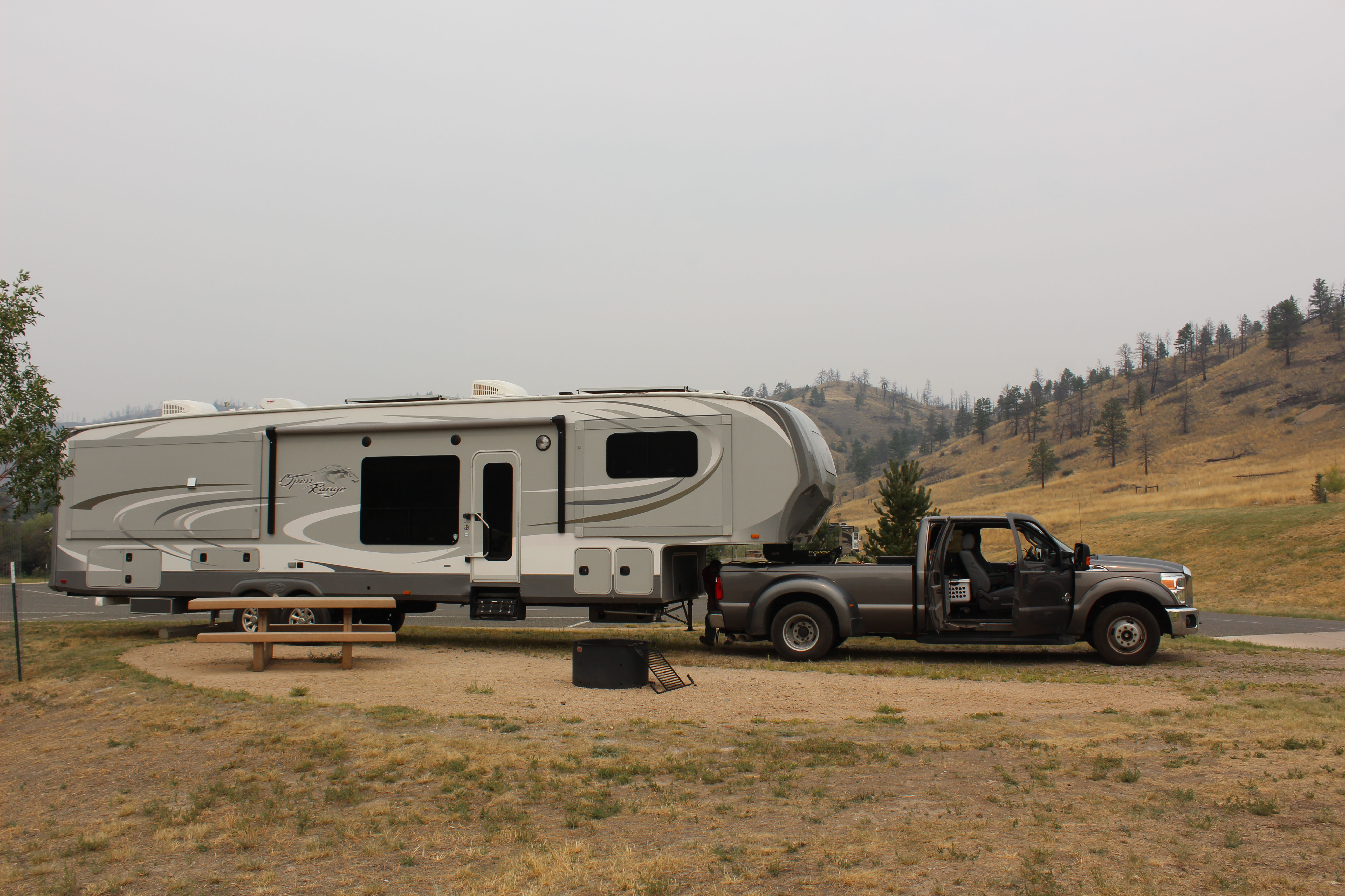 When we came back, Steve and Deb were finishing their prep to leave, and we spent the last 30 minutes hitching up, etc. Coordinating with another couple on travel day could be stressful, and we have never actually followed another camper before to the next campsite, but Steve and Deb are very relaxed on travel day. I chalk it up to lots and lots of experience because they have moved quite a bit more than us over the last year on the road, and from the outside looking in, they have a very nice system. We are still working out the kinks in our routing, but we are definitely getting there, and we all stopped together at the local Cenex to dump and take on propane and fresh water. The campground we’re heading to has a dump station, and this is definitely dealer’s choice, but I like to dump prior to making the drive just in case you get to your destination and there is a problem. I just find it less stressful in general and Lee is fine either way so if possible we dump before leaving our current stay. The drive to Fish Creek Campground in Glacier was pretty short and we got there comfortably around 3pm. How different from Whitefish Lake!!