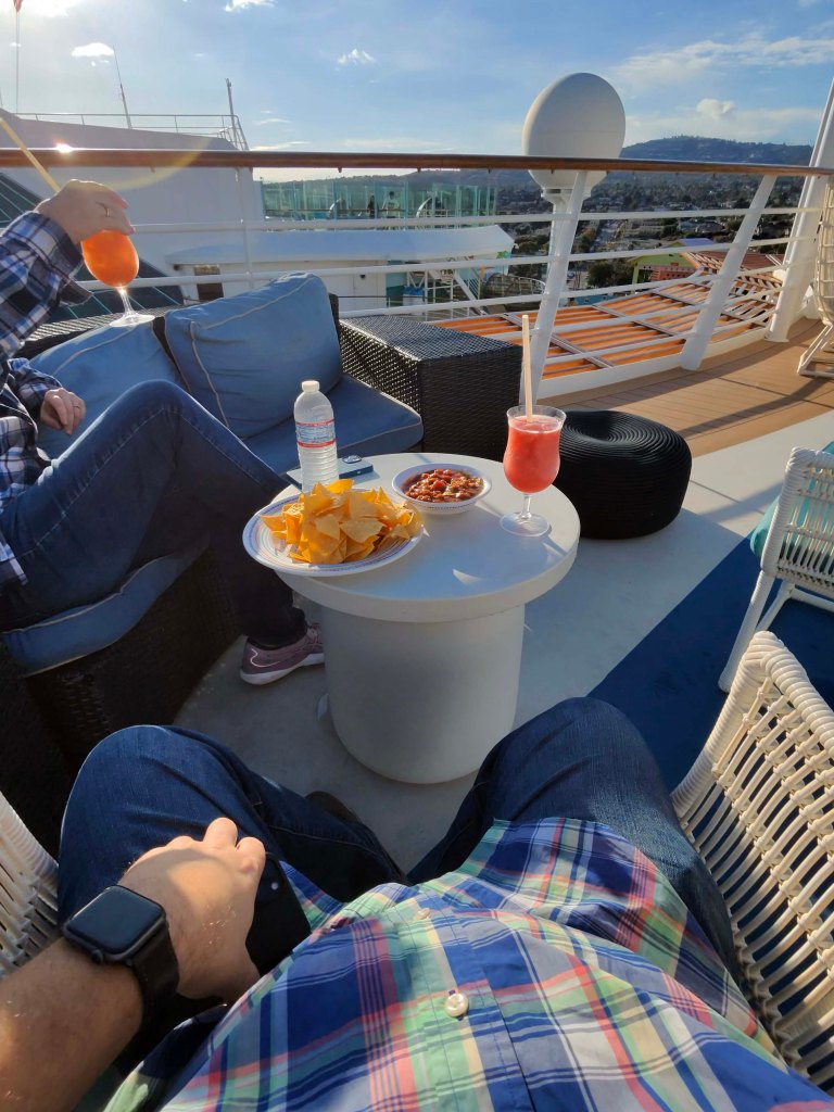 - Key Account $573.86 – This was a $41 per person per day fee which included very good internet for one device each (although you could sign off one device and sign on to another, so you could use your phone all day and then switch to an iPad or laptop to watch a movie), early and expedited entry onto the boat (Lee is a big fan and will happily give money to not have to stand around waiting any longer than he has to), dedicated seating in the entertainment venues (another excellent benefit allowing you to arrive just before a show starts and not have to worry about a seat), and a breakfast the day of departure. Overall I feel this was definitely worth it as we took advantage of all of the features that were offered.