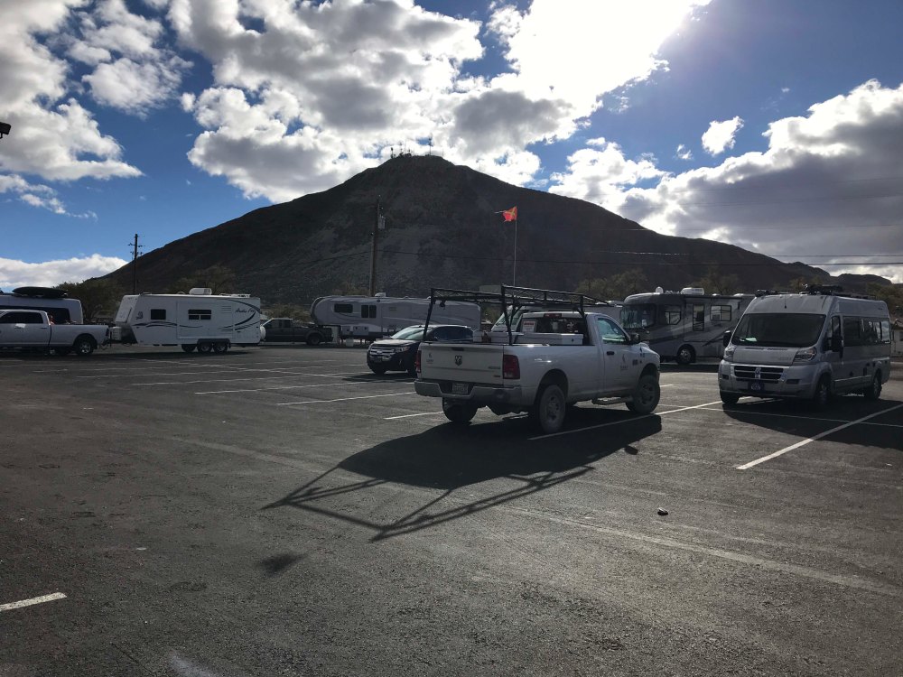 Lee is also much more comfortable driving on secondary roads now (he was always super concerned in the past about getting fuel and other potential problems), so he was up for us taking a route that would land us on the extraterrestrial highway and into Area 51. I like filling in my map…it makes me happy, but I will say some roads are less traveled for a reason. Route 6 and Route 375 are both pretty boring and although we were able to find gas, there were VERY limited options on places to stay. Well, let me rephrase that, there were tons of places we could have boondocked, but places with hookups were much harder to find. Ultimately we ended up spending the night at Tonopah Station, which was a casino with some hookups. Why did we spend $27 instead of boondocking for free? Well, finding a boondocking spot we feel comfortable staying in takes some effort and it’s never Lee’s first choice when we are traveling, and it’s an overnight spot. Since he does most of the driving, I feel like it’s dealer’s choice, so I make use of Passport America to keep our costs down. Unfortunately the one park in the area that was Passport America was super shady (that happens on occasion) and the casino was the best of several bad choices.