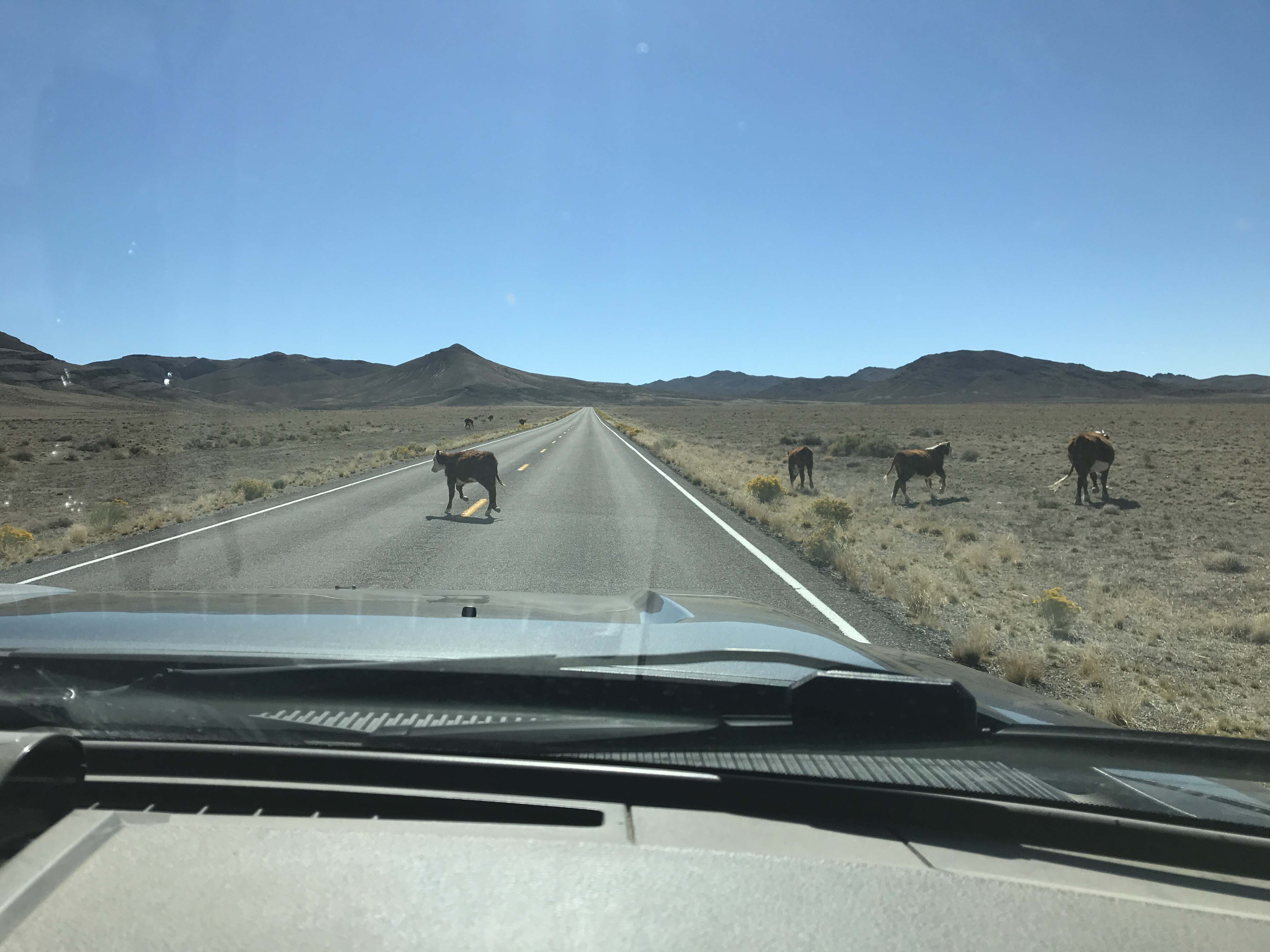 It was OK for one night and the next day we took our time leaving, because we had a pretty short drive to Vegas. I was excited about the extraterrestrial road, but that turned out to be a total bust. It was open range cattle country for one thing, and on occasion we had to slow down for the cows. And we saw very little in the way of kitschy stuff, although we did see a few signs saying this was Area 51. There was also a paved road with a sign stating Cedar Gate, which I later learned was an entrance to a military facility. Still you really can’t see anything, although I guess these landscapes were used frequently in the show the X-Files.
