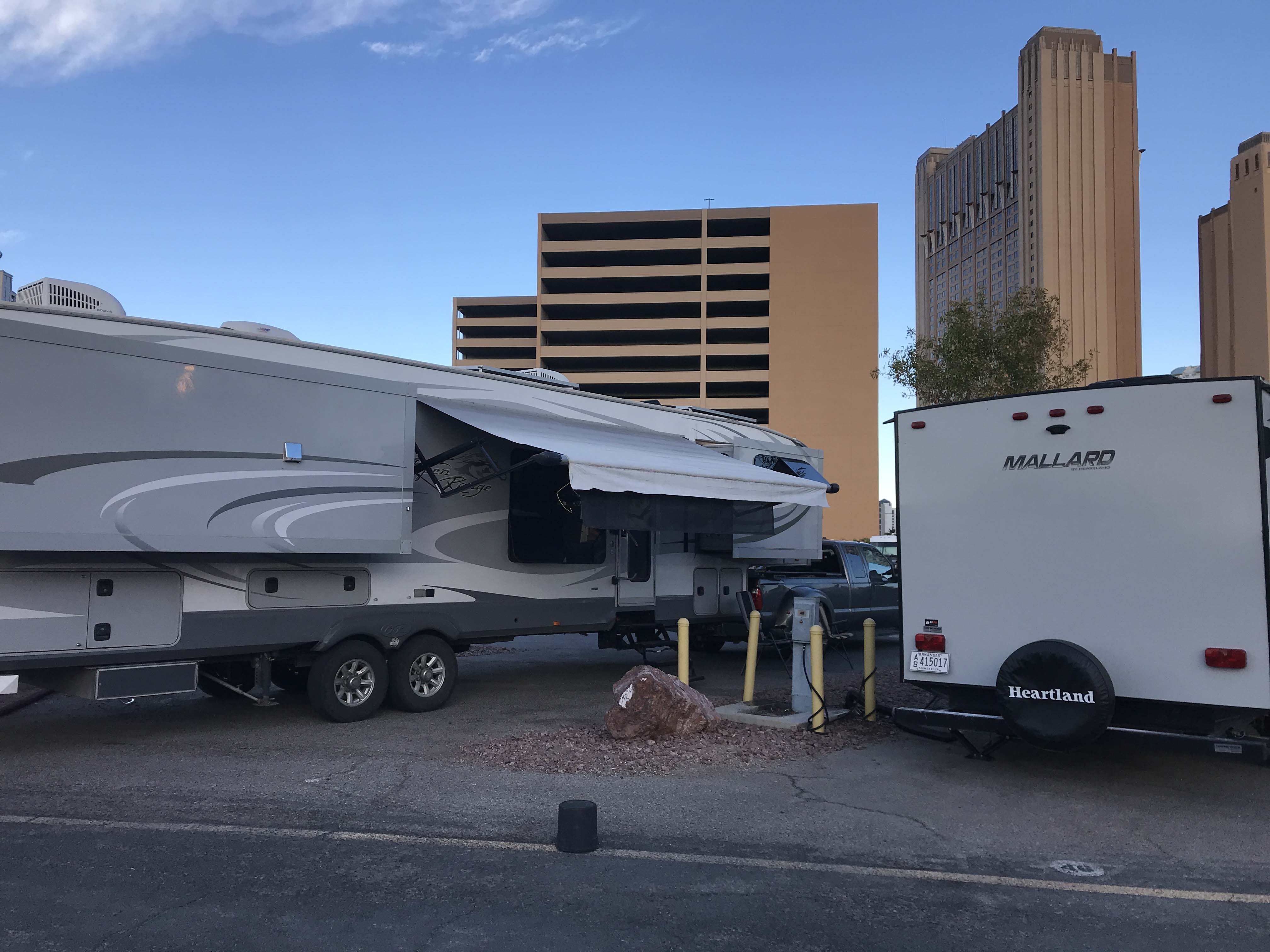 I have very mixed feelings about this location, because I thought the casino itself was kind of fun and the people were nice. There was also a great local grocery store that was part of the casino complex and we had a nice breakfast at the restaurant. The problem was the sites. I can deal with being in a parking lot, but the sites were very unlevel. One of the few benefits of the parking lot structure generally is flat sites, but these were uneven and too short. That was a major flaw in my mind.