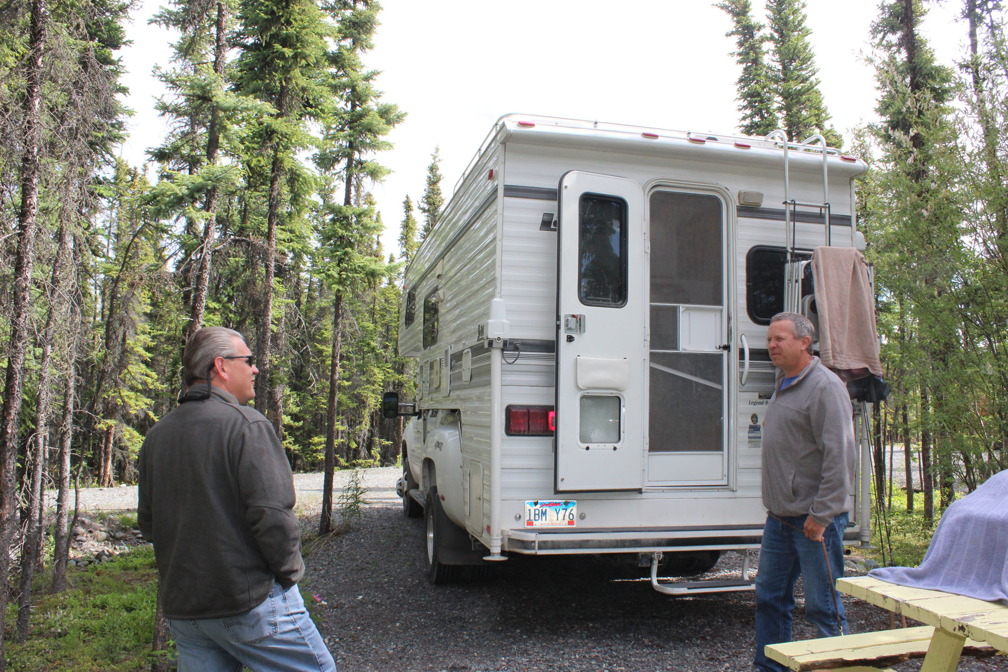 My favorite local person though was Bob Tubbs, a young man who helps out around the campground with propane, welding etc. He, his wife, and three kids live on 10 acres of land and are working towards “complete independence”. He works for the forest service, as needed, driving a fuel truck for helicopters. As he said, it doesn’t make a ton of sense to drive fuel into a fire area, but that’s what he does. When they call he is gone for many days but is fairly compensated for it. He worked 11 days while we were here on the Tok cutoff fire and made close to $7K. In my mind he deserved every penny. He and his wife have a large garden, she cans, they have egg laying chickens (they sell the excess) and next year he is adding a barn with goats and pigs. Since milk costs $6 a gallon up here and they go through a gallon every other day, goat’s milk is an economic alternative. Plus they are going to raise batches of meat chickens and every year he fishes his salmon limit and kills 1 moose and 3 caribou as well as lots of other game to stock his 4 freezers. He and is wife are truly are pioneers and I have a lot of respect for what they are doing. Plus he gave us a nice piece of salmon and some moose meat. He even explained to us how to cook it. Really nice young man.