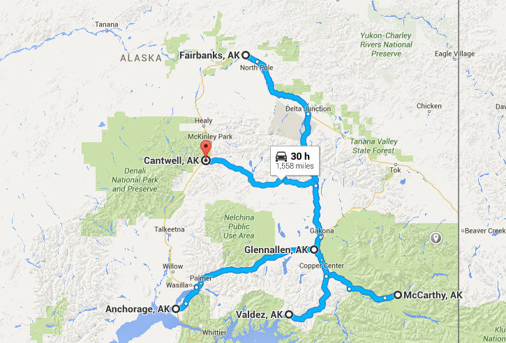 Map of Glennallen showing it’s location to other major cities. Ignore the hour marker I wasn’t really sure how to get rid of that.