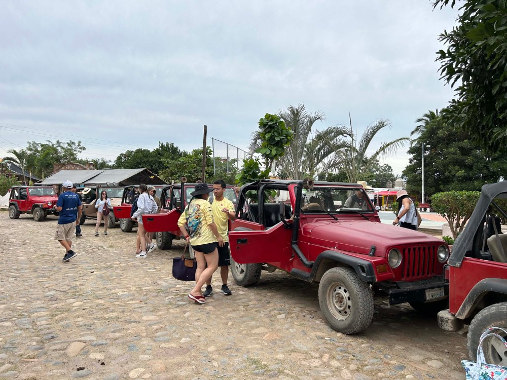 So we got to the line of jeeps and learned they were all manuals. Our group of four had three people (me, Lee, and Dillon) and Dillon actually wanted to drive. Lee was happy to ride in the back and take pictures for most of the trip and it was fun just being passengers for once. The first part of the trip was pretty interesting because we drove through town. The traffic was a little on the crazy side and staying with a long line of jeeps was challenging at times for sure. It was easier when we got on some side roads and passed multiple farms and eventually stopped at a small Mexican town. It was really interesting seeing how regular people lived and mostly they seemed glad to see us.