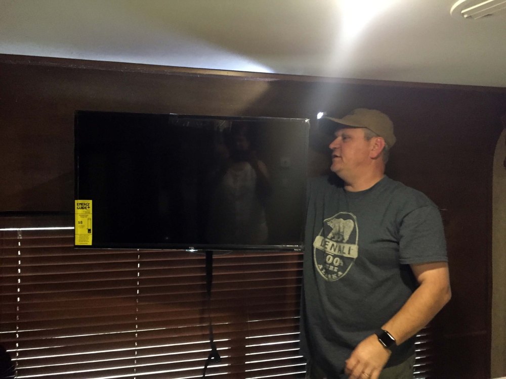 (For those non-techy, non-math geeks like me, essentially it was quieter when you stood directly beneath it. In other areas of the room, it didn’t seem to make a huge difference but directly underneath absolutely. Since the chair is almost directly underneath it, it will certainly make Lee’s life more pleasant. From my perspective it was relatively cheap, Lee had lots of fun making it, and it looks like it came with the RV. Those are my criteria for a good RV Mod! -Trace)
