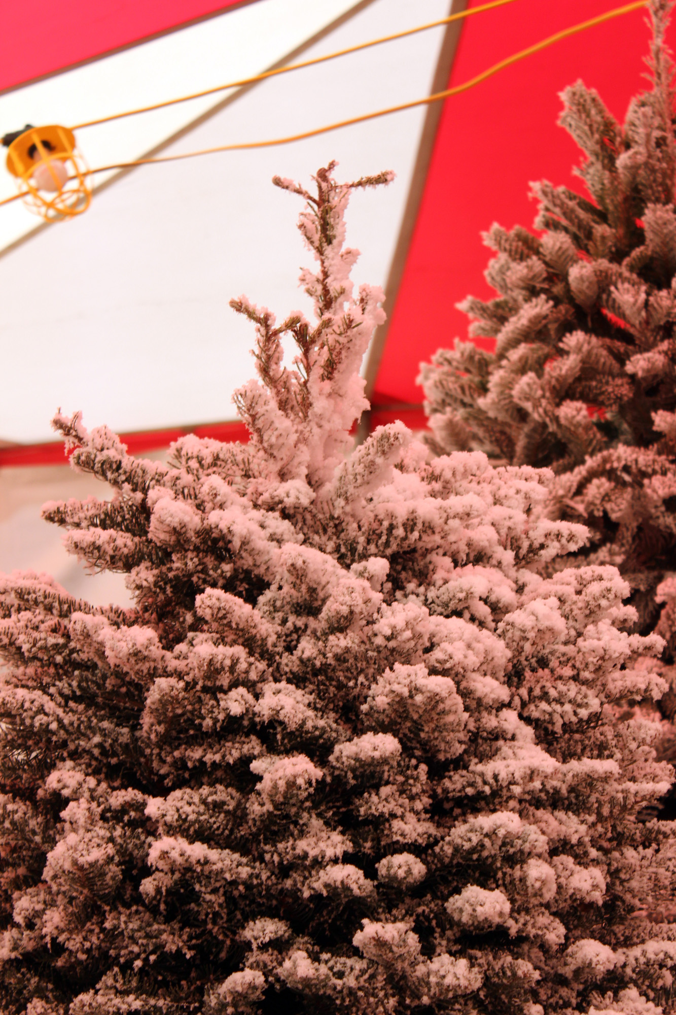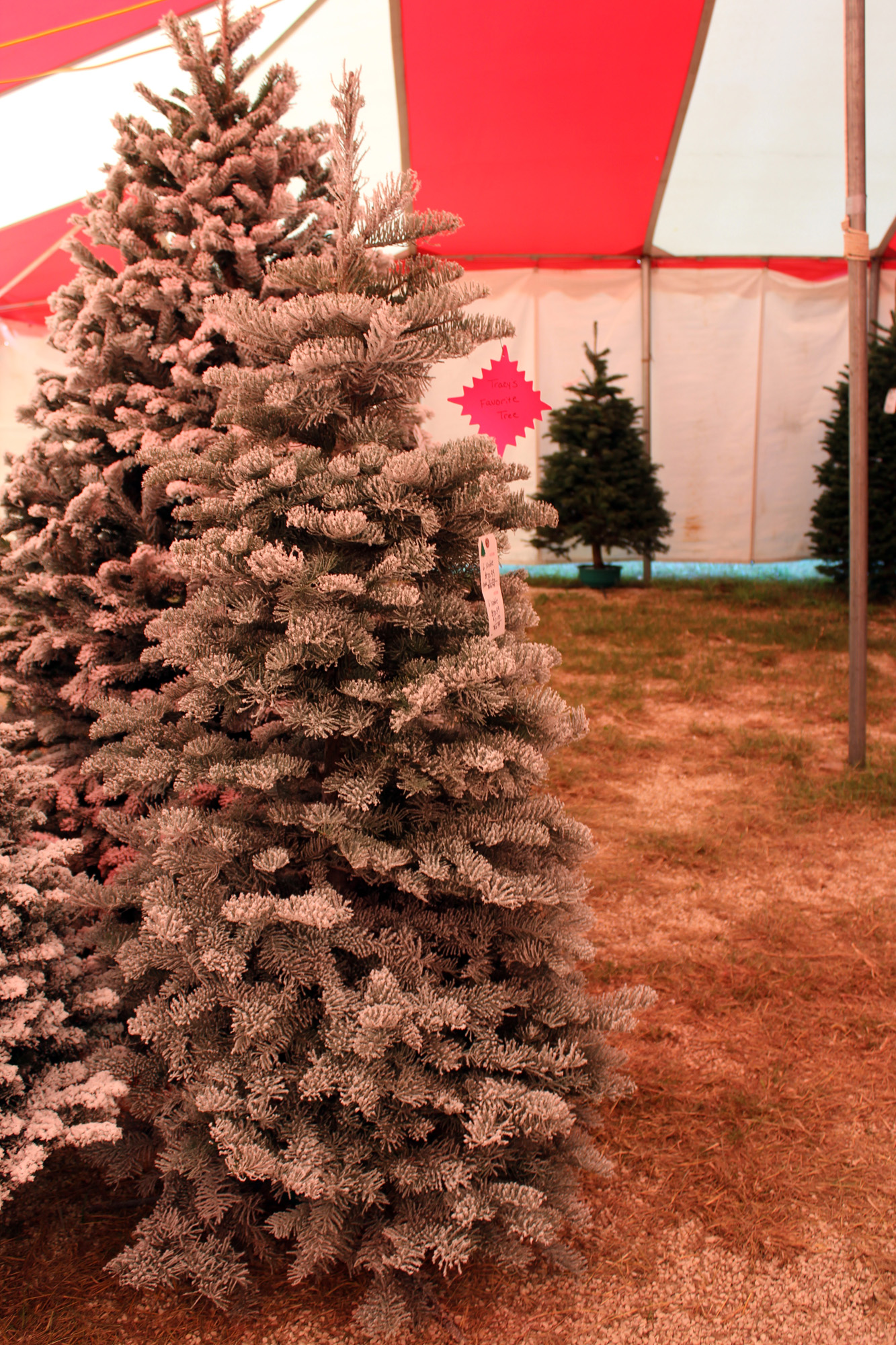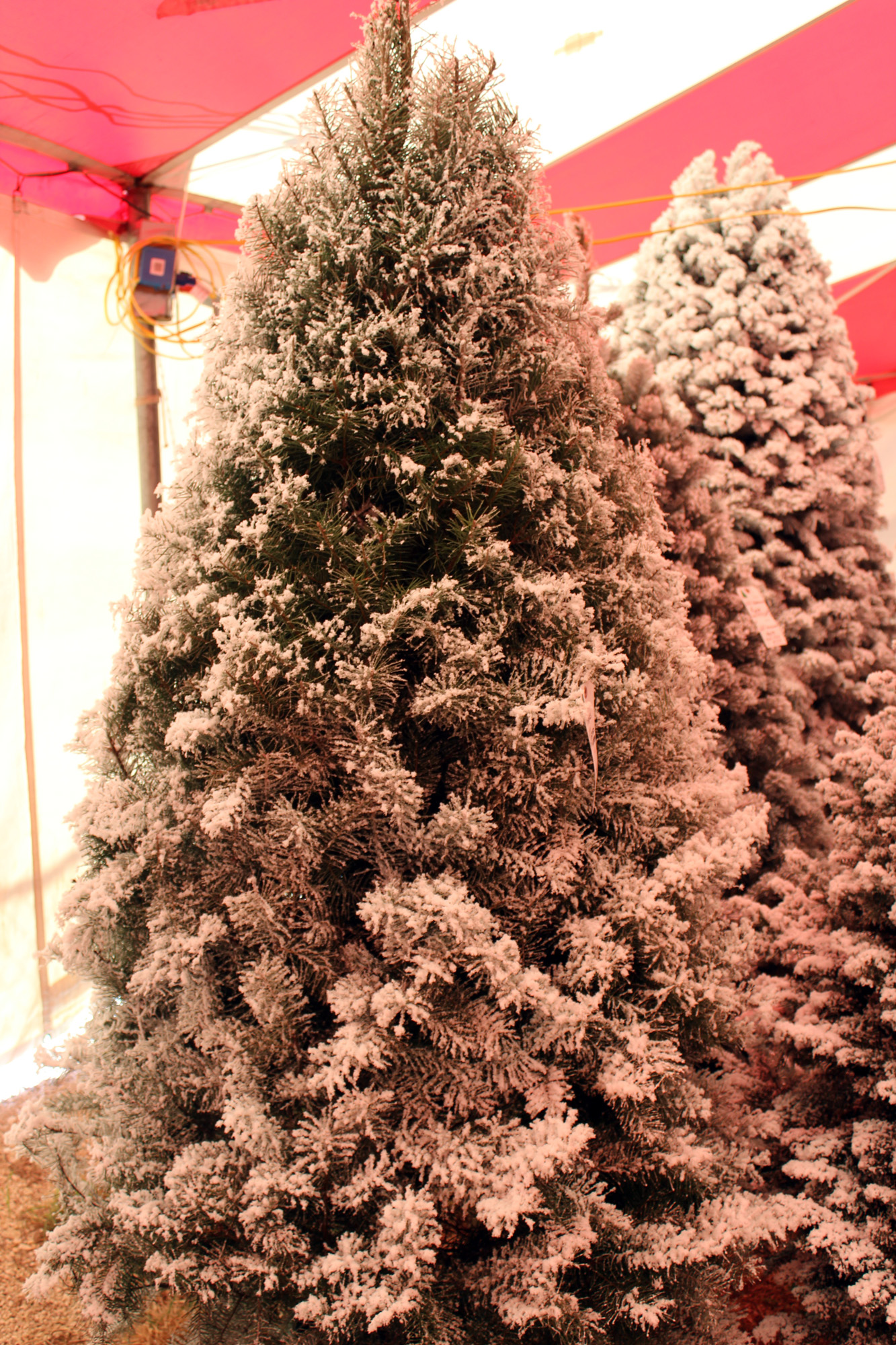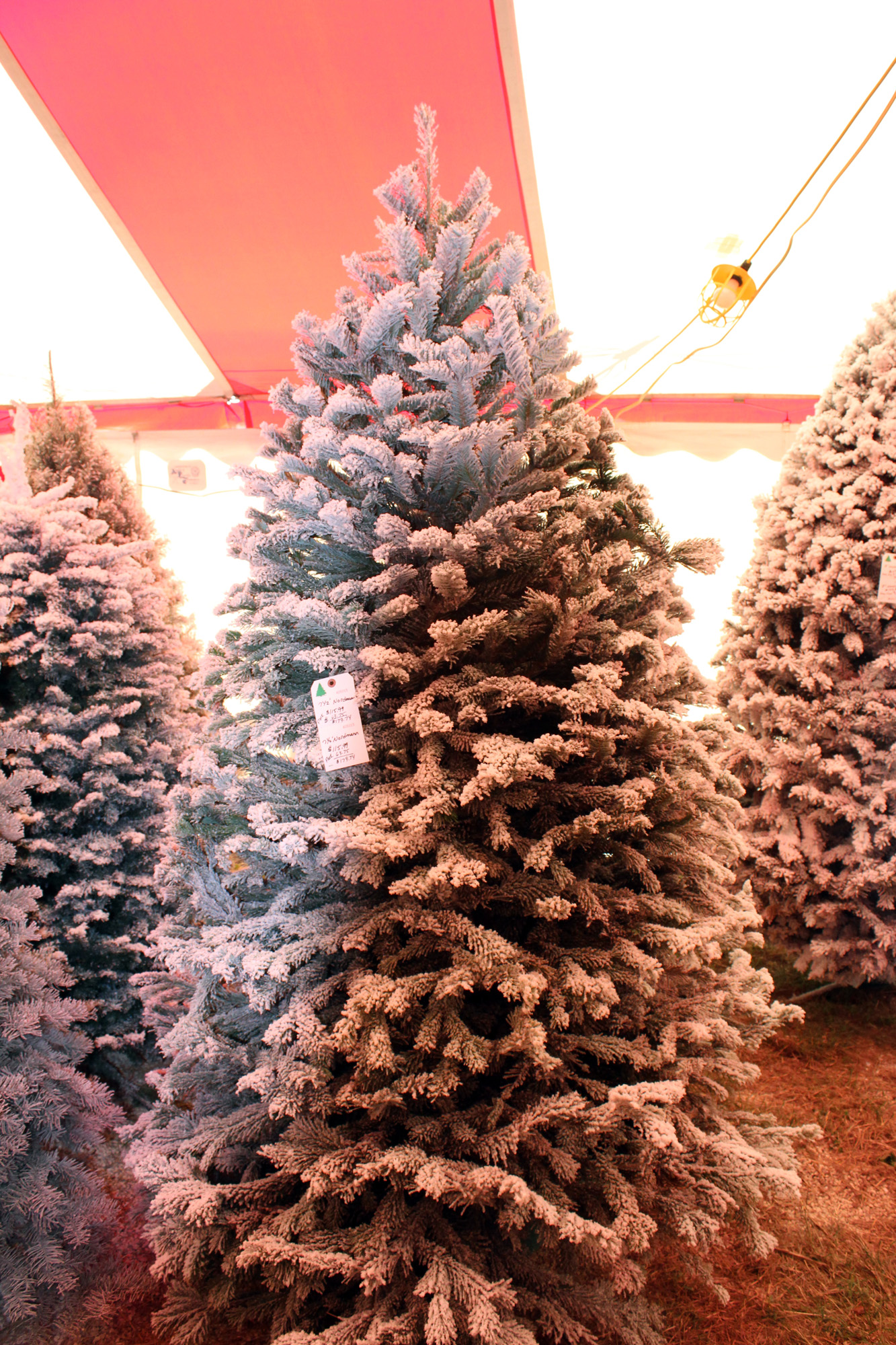 This was my “Charlie Brown” tree totally transformed by a light flock. It’s now my favorite tree on the lot