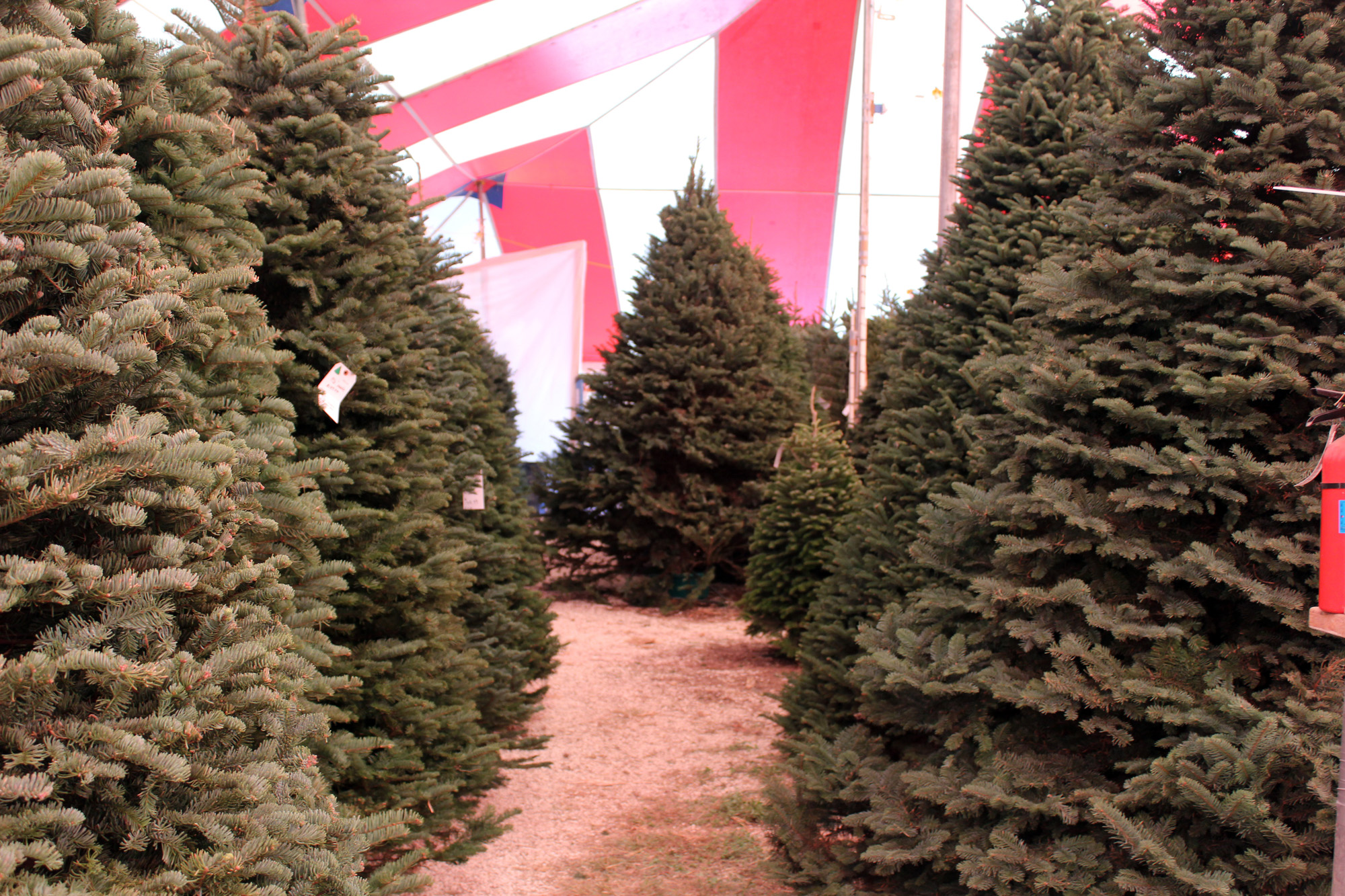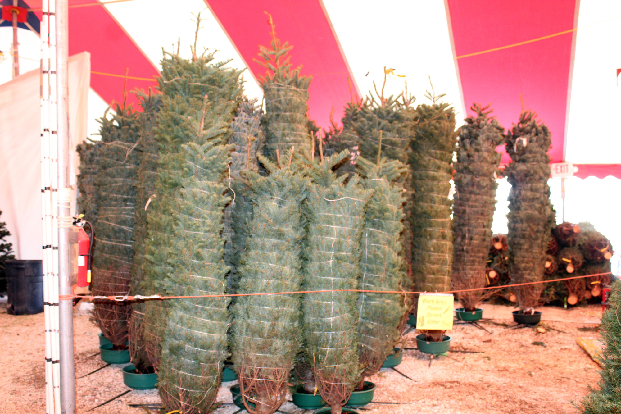 Our new configuration allowed us to put up two more rows of trees. Makes the aisles a little tighter but opened up much needed back stock area