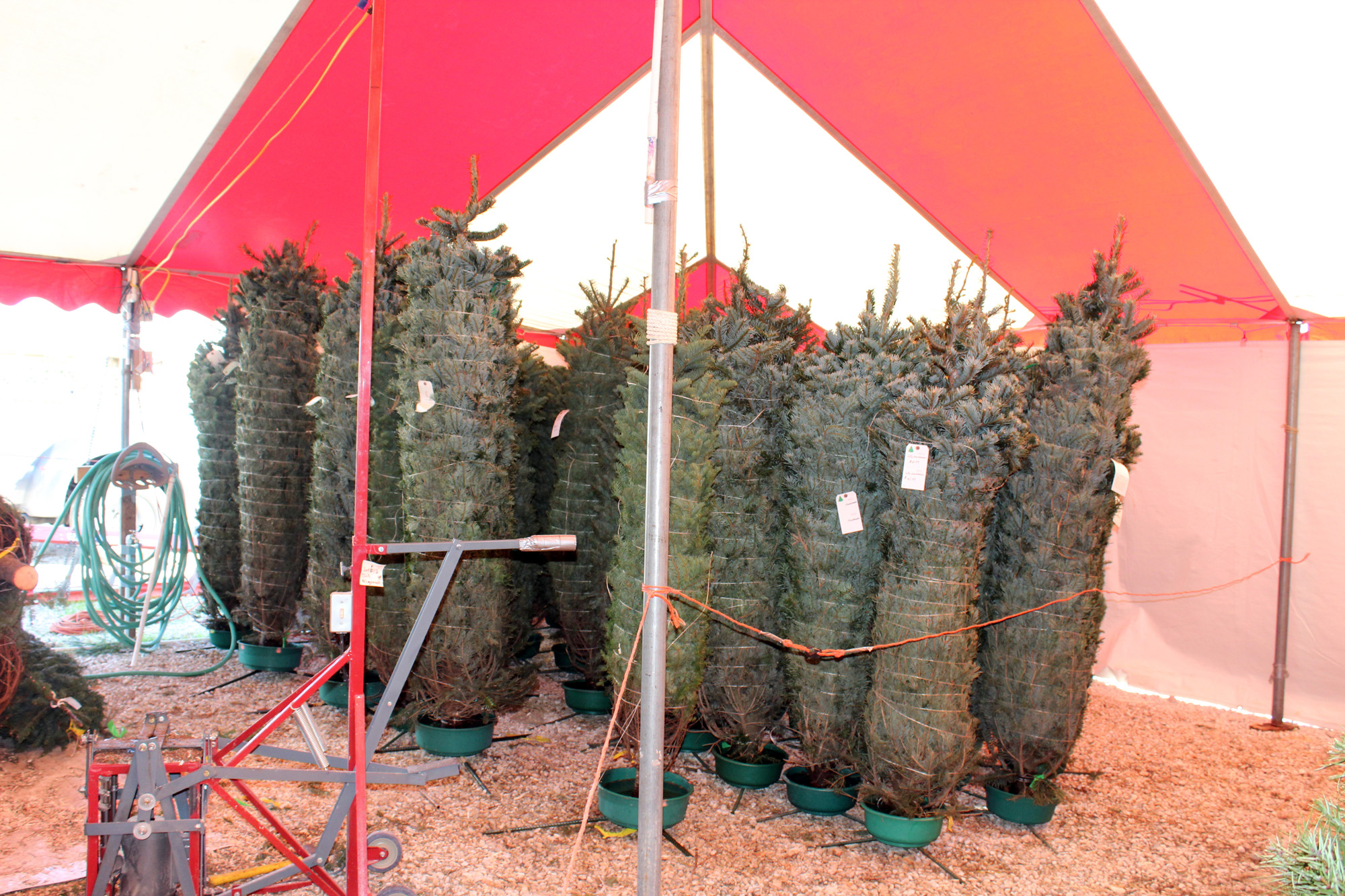 At this point both Lee and I were getting concerned. We had been told two strong guys could process 20 trees an hour, but obviously that wasn’t the case. But we also understood that even though we only sold 17 trees that day it was steady busy and we did $2,700 in additional revenue. I called and talked to the owner and his second in command a bit about the situation. It was a good conversation and I learned quite a bit about managing Christmas Tree labor. Essentially, two strong guys can process 20 trees 6-8′ trees an hour if they are not interrupted. That’s pure task time. Larger trees are more time consuming and frequent customer interruptions cause a major loss of efficiency. The larger lots are able to have separate staff for processing trees versus helping customers on the floor so are able to achieve those higher efficiency levels. Because we are small, everyone does everything, hence it takes longer. I felt quite a bit better after the conversation. Not only because I learned something, but also because I firmly established with the owner that our situation as a small volume tent selling many large trees was somewhat unique.