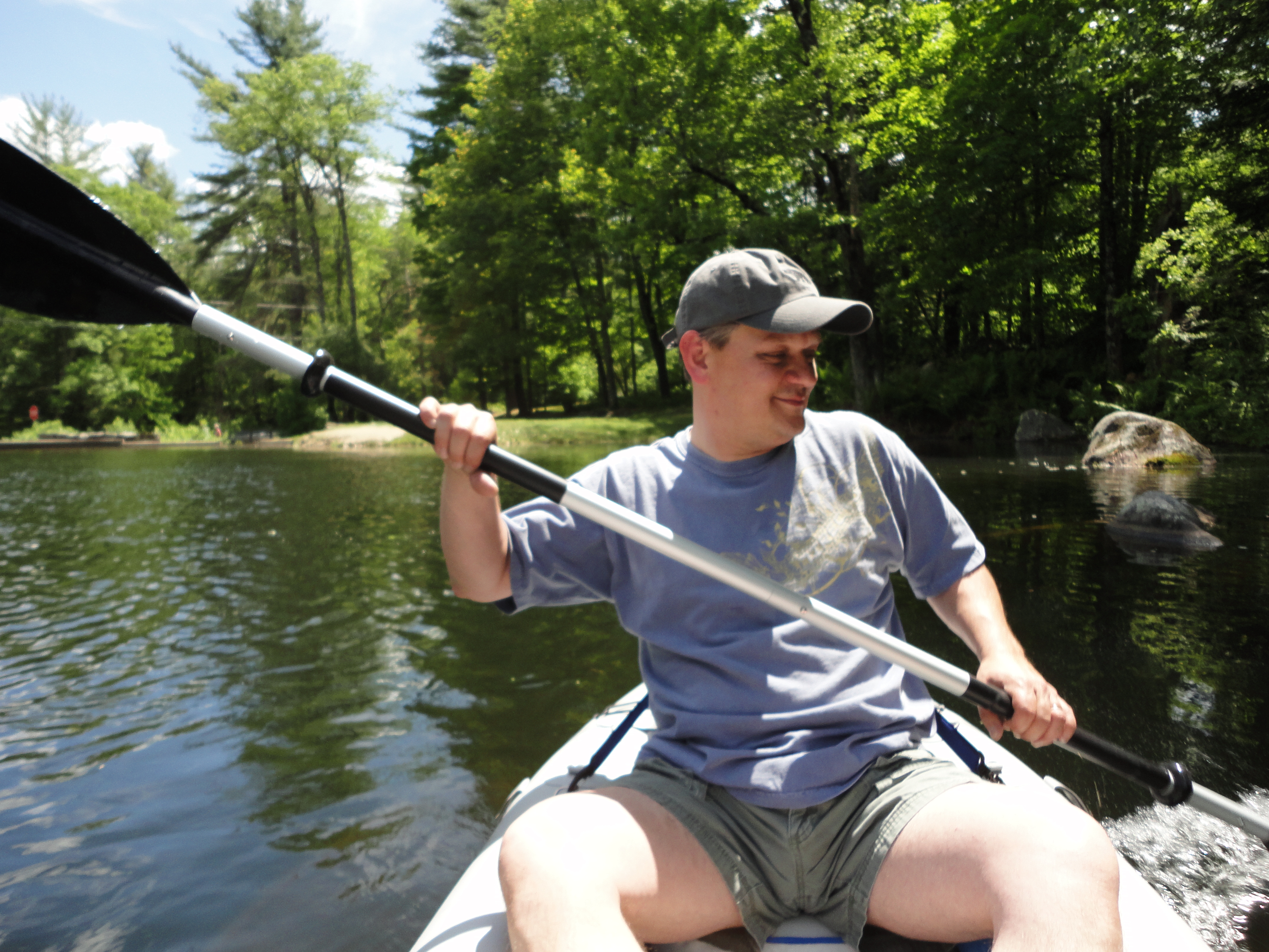 We got up early and had a big breakfast and then went on a long paddle on the Ashuelot River. We wanted to try using two cars, so we left the truck at the covered bridge and drove into Keene to Ashuelot Park. There is a dam there and you can launch a kayak right after the dam. It’s cool because you can paddle pretty close to the waterfall and then make your way down the river.