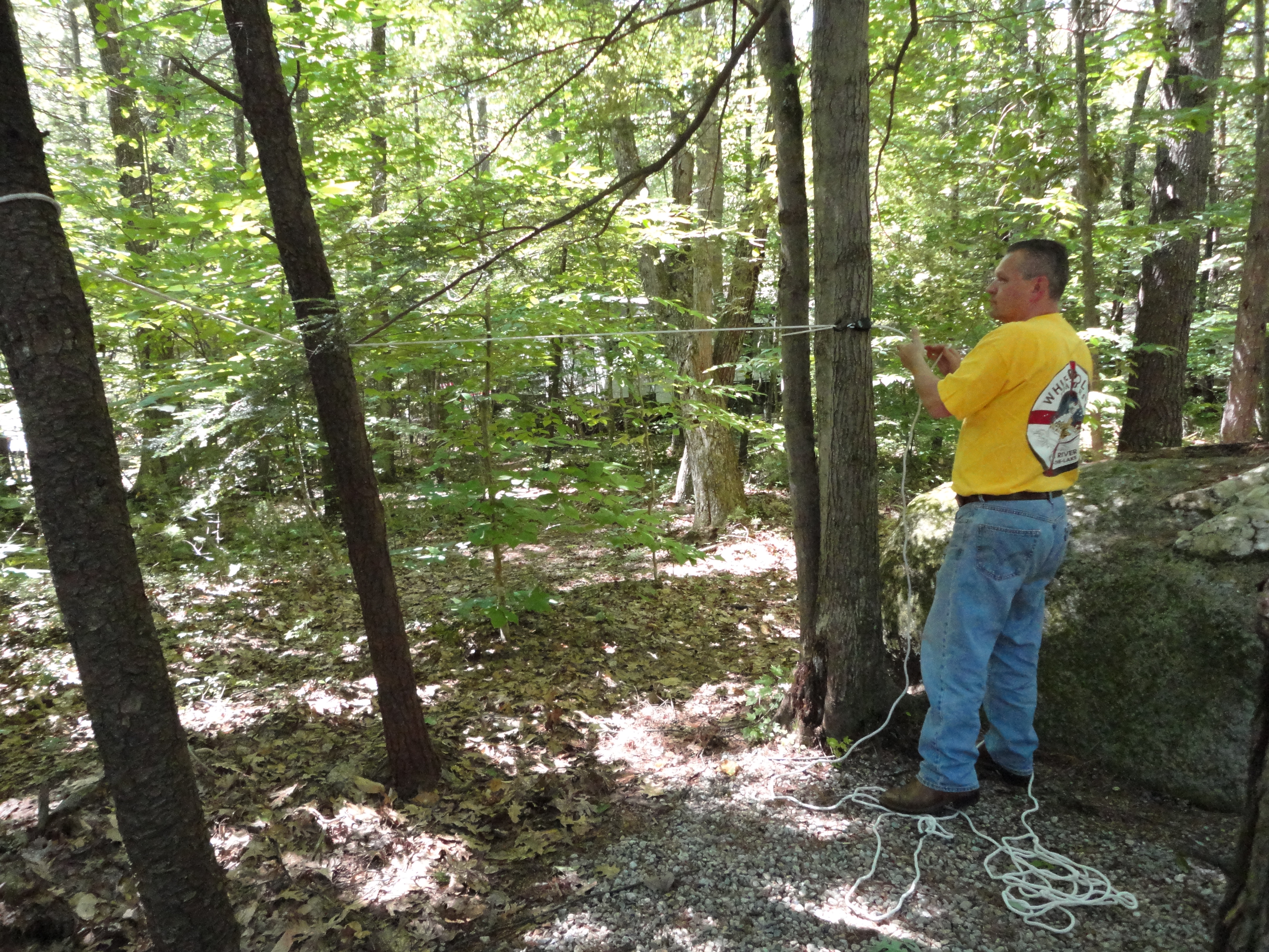 After organizing we watched The Last Ship (really enjoying that show) and then headed to bed. It started raining really hard around 9pm and didn’t let up all night. I mean it was pounding and even though we had a fan, a white noise machine, and the AC on all we could hear was the rain on the slide out. It took me awhile to fall asleep but once I did I was out. Lee had a very restless night, which is unusual because he’s generally a sound sleeper. In the morning, it was still raining very hard and I had an 8:30 conference call. There really isn’t anywhere in the camper you can’t hear the rain noise and I was pretty self-conscious about it, but when I asked the folks on the call if they could hear it they said it sounded like typing. That’s not good either, because it’s generally considered rude to type while on a call and unmuted. I’ll have to think this one through. It’s actually quieter outside under the canopy, but sometimes I need my computer in front of me. I have seen other seasonal campers (who don’t have awnings) put a tarp over the slide out above it and tied to a tree. This seems to me like it would work, because the drops hit the tarp not the metal itself. Lee is dubious, but I am interested in giving it a try…I’ll let you know. I was impressed that during the day time, the owners of the campground were actively patrolling the area. They had a small bulldozer out and were checking all the sites for issues. Good to know if we weren’t here someone would be watching out for our camper. Our site has been great though. It’s rocks then sand and the drainage is terrific. We have had no standing pools of water on the site itself, although the roadway is pretty muddy. I walked outside to thank Bill (the owner) for keeping an eye on things and I think he appreciated me not complaining about the rain. I am truly grateful that he is on top of the situation. When I walked back up the camper I looked into the door I had left open, saw furry movement, and screamed like a little girl. Jill had run up the stairs and was IN THE HOUSE!!!! Bill just laughed and said..”You gotta shut your screen door” (well no shit lol) and “Wait a minute he’ll come out.” Right when he said that Jill scampered out and was up a tree lickety split. Now I don’t mind the chipmunks having the run of the site, but I draw the line with having them inside the camper!! Good thing Bill was standing there because I would probably have panicked. Never a dull moment out here at the campsite.