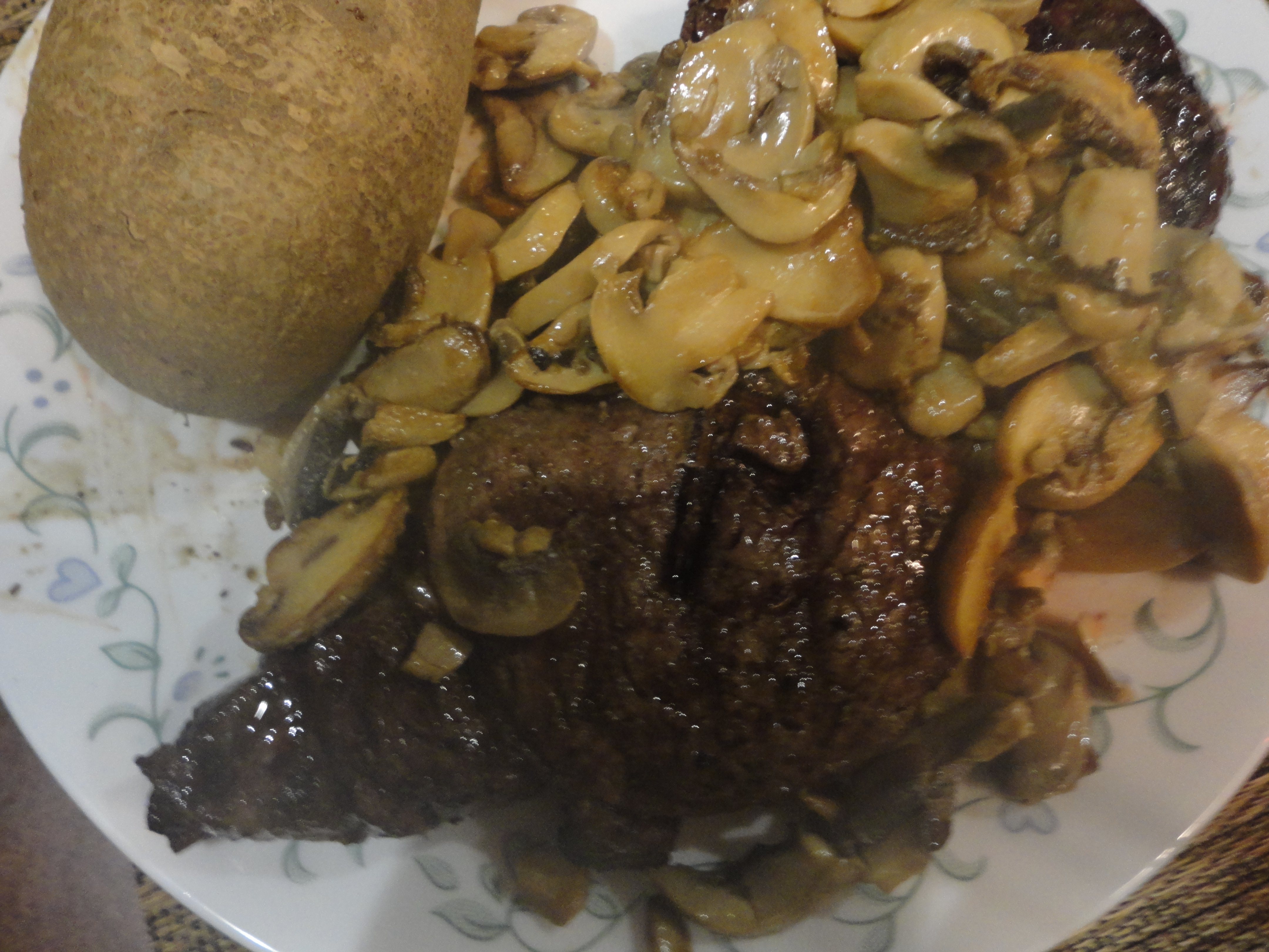 For dinner Sunday night we went all out with some beautiful steaks we had bought. I was going to make green beans almondine but the super market bought green beans were moldy so scrapped that plan and decided to steam the collard greens and put them with the almondine butter sauce. No clue if this will work or not but the collards were only $1.99 a bunch so it’s a cheap experiment. Josh’s recipe will need to wait until our next trip to the farmers market. Lee is making his mushrooms we bought over the fire and we threw in some of the garlic scapes to see how they cooked over the fire. Look at us trying new things. The steak was great everything else was so-so. Nothing made the recipe list below. It’s funny how some meals everything new goes great and others not so much. You’d think it would be more mixed, but usually its all good or all not so good.