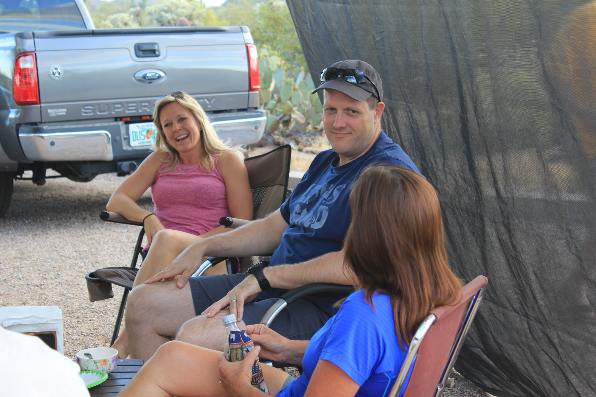 After kayaking we headed back and got ready for Lee’s step sister Lisa, and her husband Dave. They live in Gilbert and she reached out and wanted to come see the rig. They aren’t RVers, so we gave them the nickel tour, and then I made Boursin Chicken for dinner. I like making real dinners when non-rvers come to visit so they can see it isn’t all hamburgers and hot dogs and the chicken is simple but still a little fancy. We even used regular plates and Lee busted out a table cloth so we were super fancy!!