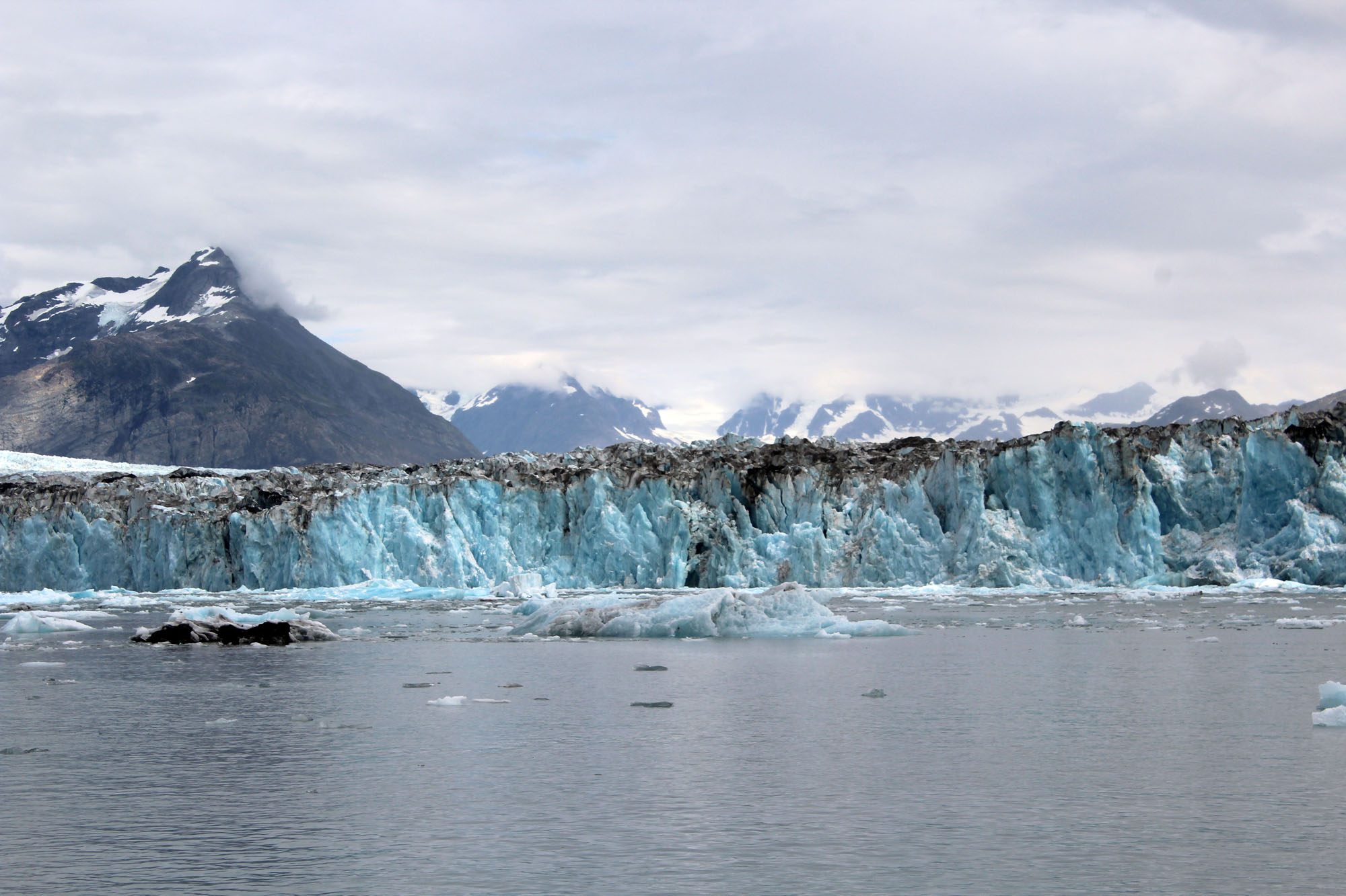 Next up was Columbia Glacier, and that very pretty cool. It does take quite some time for the captain to navigate the huge ice chunks, but he managed to get us pretty close on this particular day since there was little wind. The sun also came out for a little bit and despite the ice chill it was pretty. What everyone wants to see though is a big chunk of ice breaking off, and again reality did not match the picture in my head. The ice wall is huge and the calving happens very quickly, so although I saw a couple after the fact splashes I didn’t actually see ice breaking off, and I certainly didn’t snatch a picture of it happening. Still, I am glad I saw this, although I was uncomfortably aware of the Titanic movie throughout. That water was freezing and you wouldn’t last long in it. Here are the pictures of how it appeared as we got closer and closer.