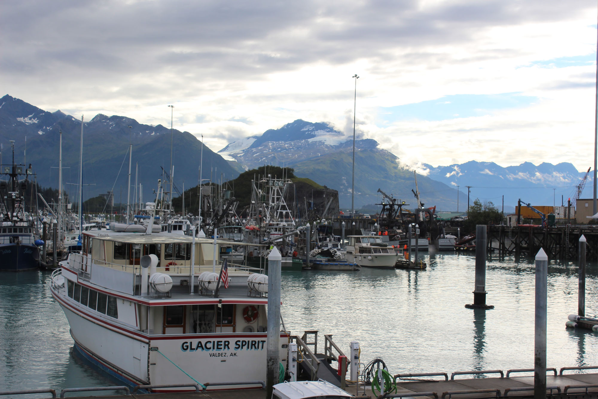 The actual birthday weather wasn’t so bad for Valdez; no rain, and a little bit of sun peeking through, so we were all pretty excited about taking the cruise. Here’s the thing though, and I really think I should lead with this: Despite my best efforts in my head, when I think glacier cruise I had this image of a beam of sunlight and an orca jumping out of the water so I could snap the perfect pic. Yes, I knew it was unlikely, but since it was my birthday I thought maybe the universe would smile. Alas, there were no whale sightings on this cruise, but we did see the glacier, and two kinds of puffins at the end and that was pretty special. As a side note, this same group of friends went on a sunset cruise in Tarpon Springs a couple of years ago and it did have several magical moments, so sometimes it does happen, just not so much on this trip.