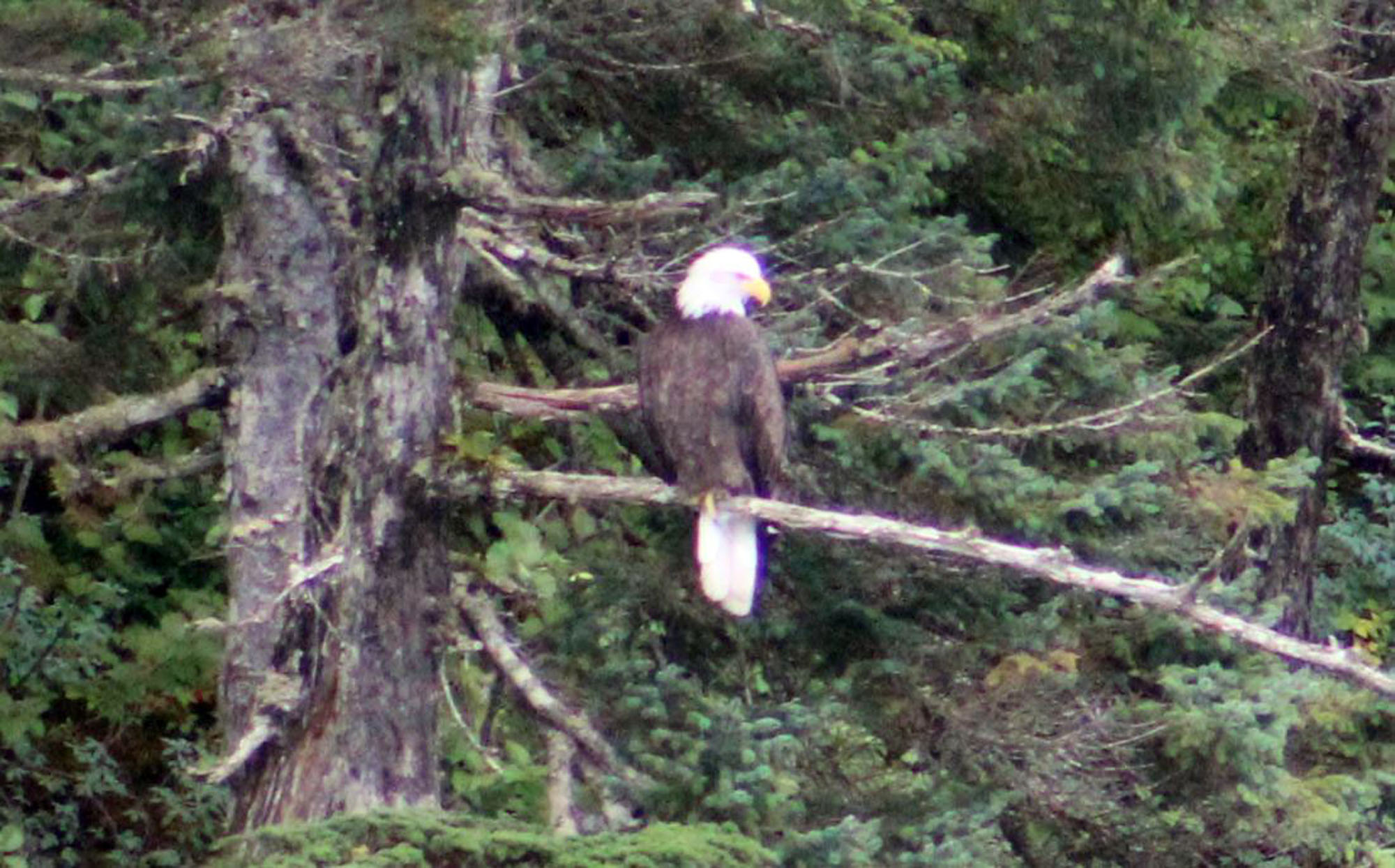 We saw several bald eagles along the shore line, but too far away for any really good pictures. This is how it looked to the naked eye